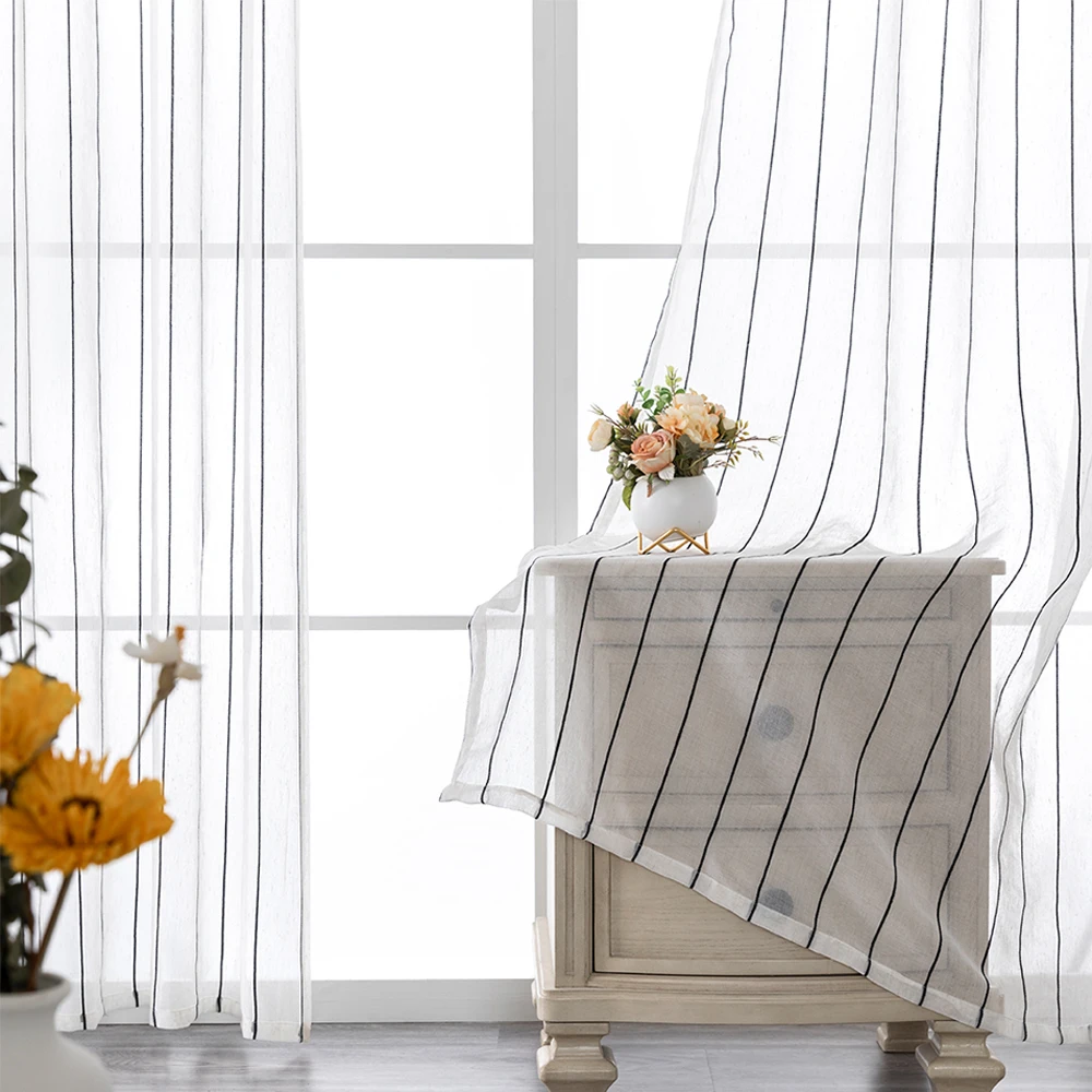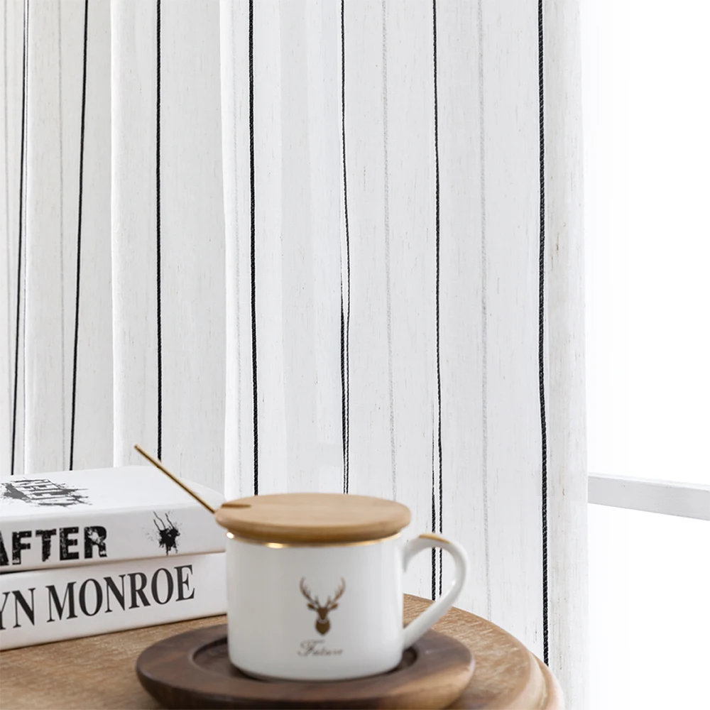 CDIY полосатые прозрачные Занавески s для гостиной, окна, спальни, тюлевые занавески в японском стиле, льняная вуаль, занавески, обработка кухонных окон