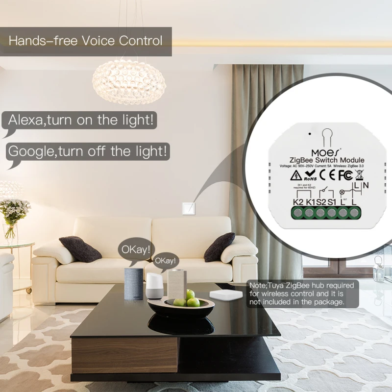 2. Позволяет осуществлять голосовое и Беспроводное дистанционное управление без рук; Поддерживает Голосовое управление Amazon Alexa Google Home и управление через приложение Smart Life и Tuya на смартфонах со специальным концентратором Tuya ZigBee 3,0, требуемым и подключенным.