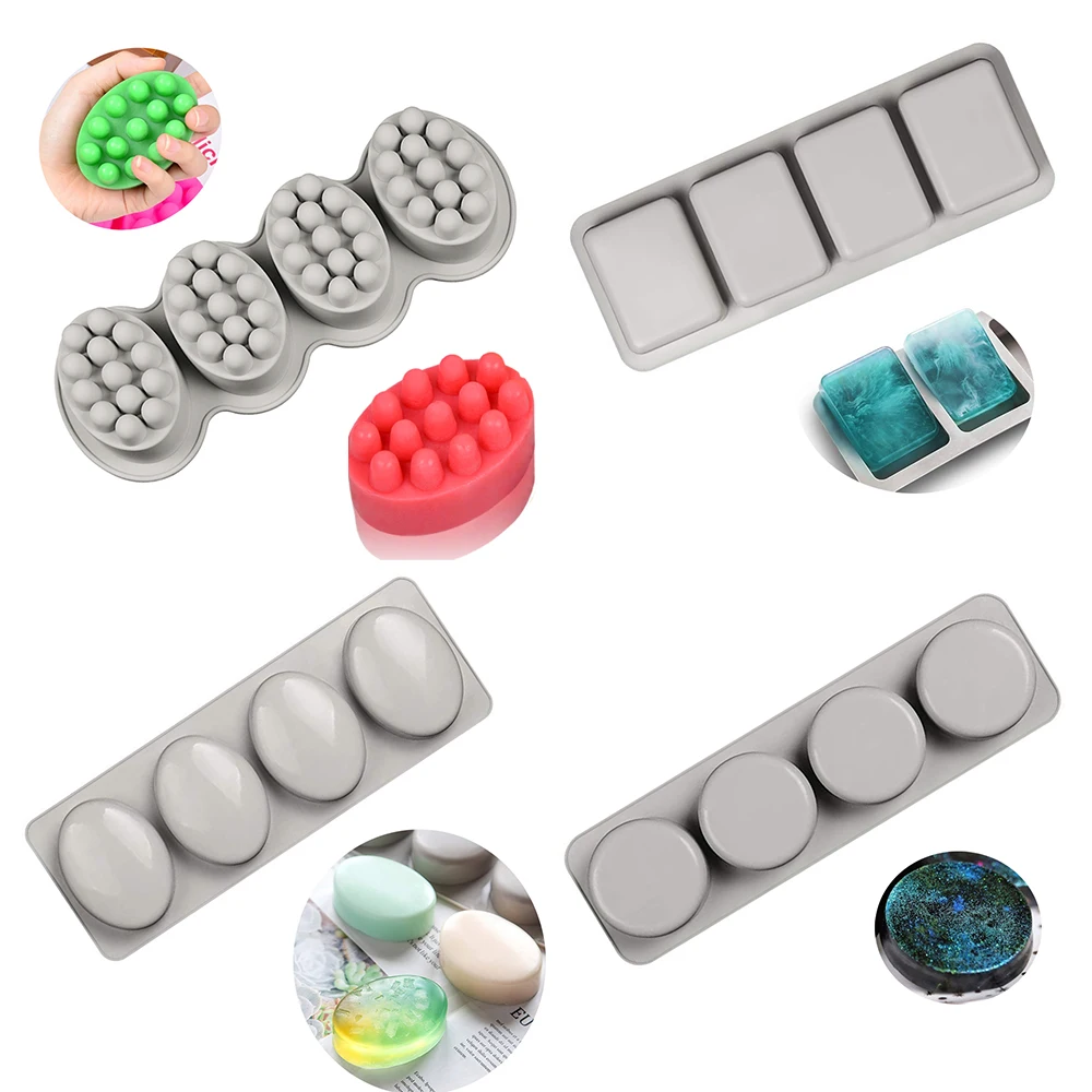 Новая силиконовая форма для мыла с 4 ячейками, 4 формы для мыла, 3D сделай сам, спа, форма ручной работы, украшение, массажный терапевтический поднос, инструменты
