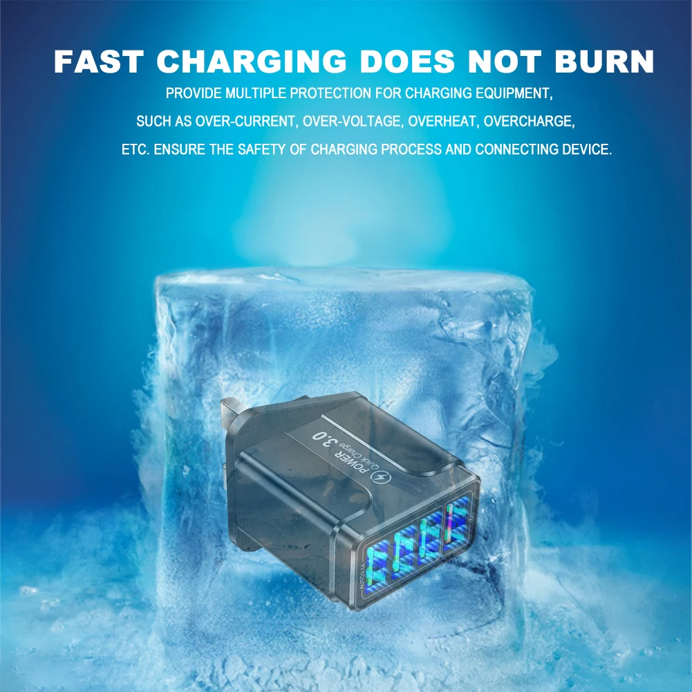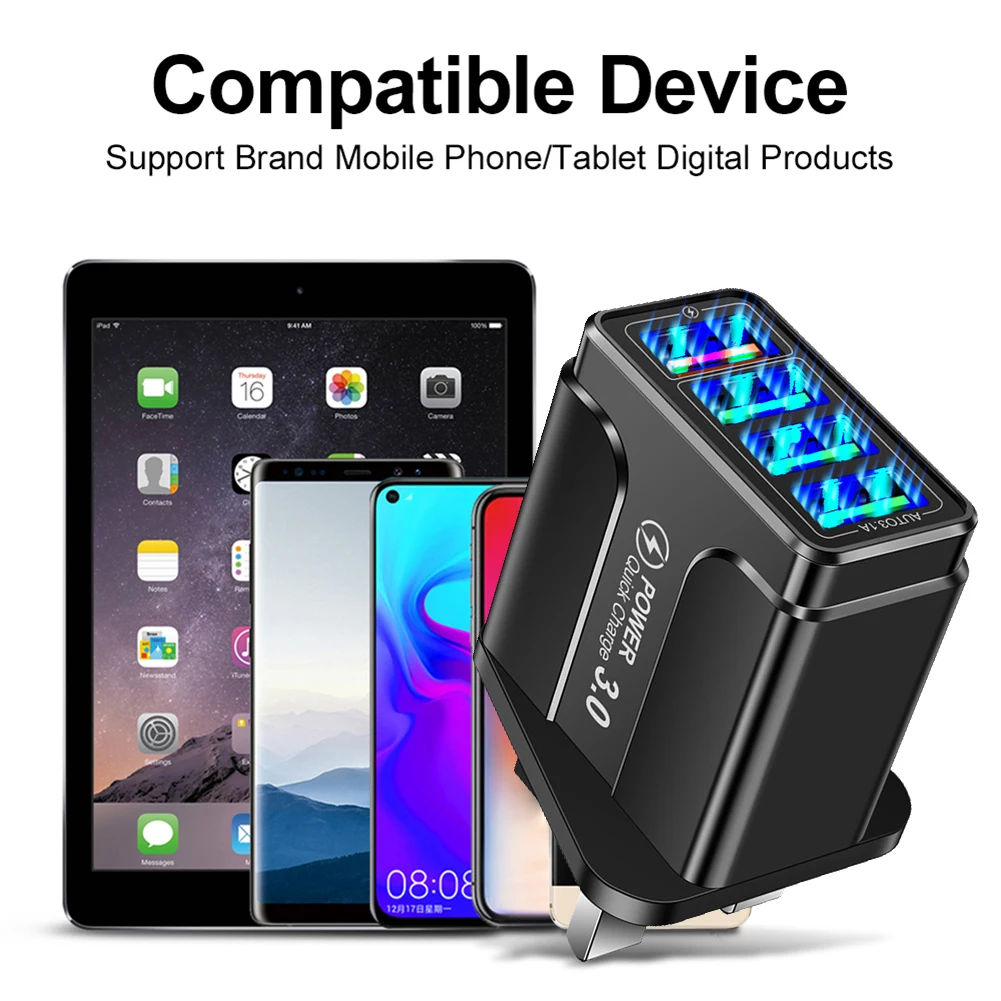 Сетевое зарядное устройство с 4 USB-портами, 3,0 дюйма