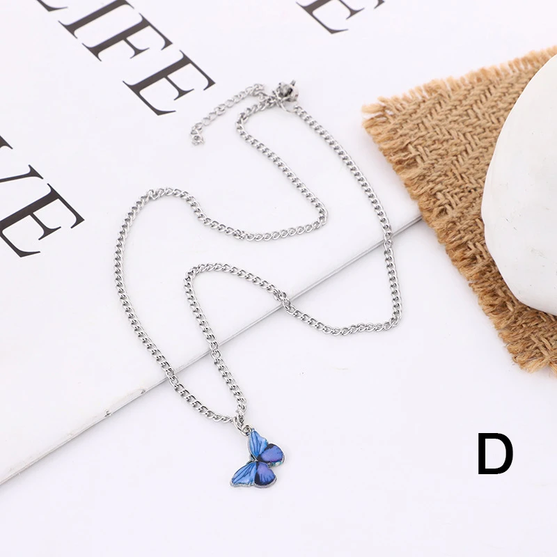 2020 Новая мода синий фиолетовый цвет бабочка кулон ожерелья для же...