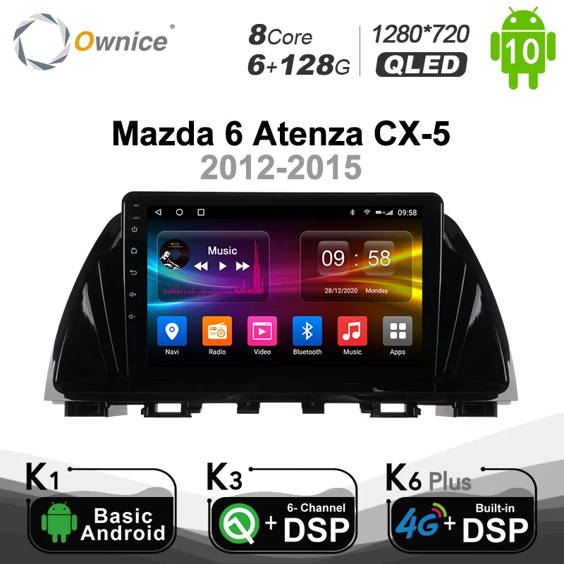 6G + 128G Ownice Android 10,0 4 Гб + 64 Гб автомобильное радио 2 Din GPS Navi для Mazda 6 Atenza CX-5 2012-2015 GL GJ 2012 2013 2016 2017 аудио Подходит для Для Mazda 6 Atenza CX-5 2012-2015ForMazda 6 GL GJ 2012 2013 2016 2017 Если оригинальное автомобильное радио имеет функцию ниже, совместим ли блок Ownice Head? * Управление рулем --- да* Орингинальный радар или датчик парковки --- да* Отображение статуса открытой двери, настройка автомобиля --- да* Оригинальная AUX / USB/обратная камера --- Да, поддержка* Оригинальная большая круглая кнопка переключения --- да* Оригинальная звуковая система Bose --- нет, нужно купить специальные аксессуары Внимание: Приведенная выше информация только для справки, иногда она может не быть совместима с некоторыми автомобилями, потому что автомобили производятся в разных странах в разных летних вариантах, спасибо за понимание. K6 Plus 128G --- UIS7862 | Android 10,0 | 8 ядер (A75 * 2 + A55 * 6) | 6G + 128G | 2.5D + IPS QLED1280 * 720 | Радио 7708 | Усилитель 7851LK6 Plus 64G --- UIS7862 | Android 10,0 | 8 ядер (A75 * 2 + A55 * 6) | 4G + 64G | 2.5D + IPS QLED1280 * 720 | Радио 7708 | Усилитель 7851LK6 плюс 32G ---- UIS7862 | Android 10,0 | 8 ядро (A75 * 2 + A55 * 6) | 3G + 32G | 2.5D + IPS QLED1280 * 720 | Радио 7708 | Усилитель 7388K3-PX5 ------ PX5 | Android 10,0 | 8 ядер | 2G + 32G | 2.5D + TN1024 * 600 | Радио 7708 | Amplifier7851LK3-PX6 ------ PX6 | Android 10,0 | 6 ядер (A75 * 2 + A53 * 4)| 4G + 64G | 2.5D + IPS 1280*720 | Радио 7708 | Усилитель 7851LK1-Low ------ AC8227L | Android 6,0 | 4 ядра | 1G + 16G | 2.5D + TN 1024*600 | Радио 7786 | Усилитель 7388K1-High ------ AC8227L | Android 8,1 | 4 ядра | 2G + 16G | 2.5D + TN 1024*600 | Радио 7786 | Усилитель 7388