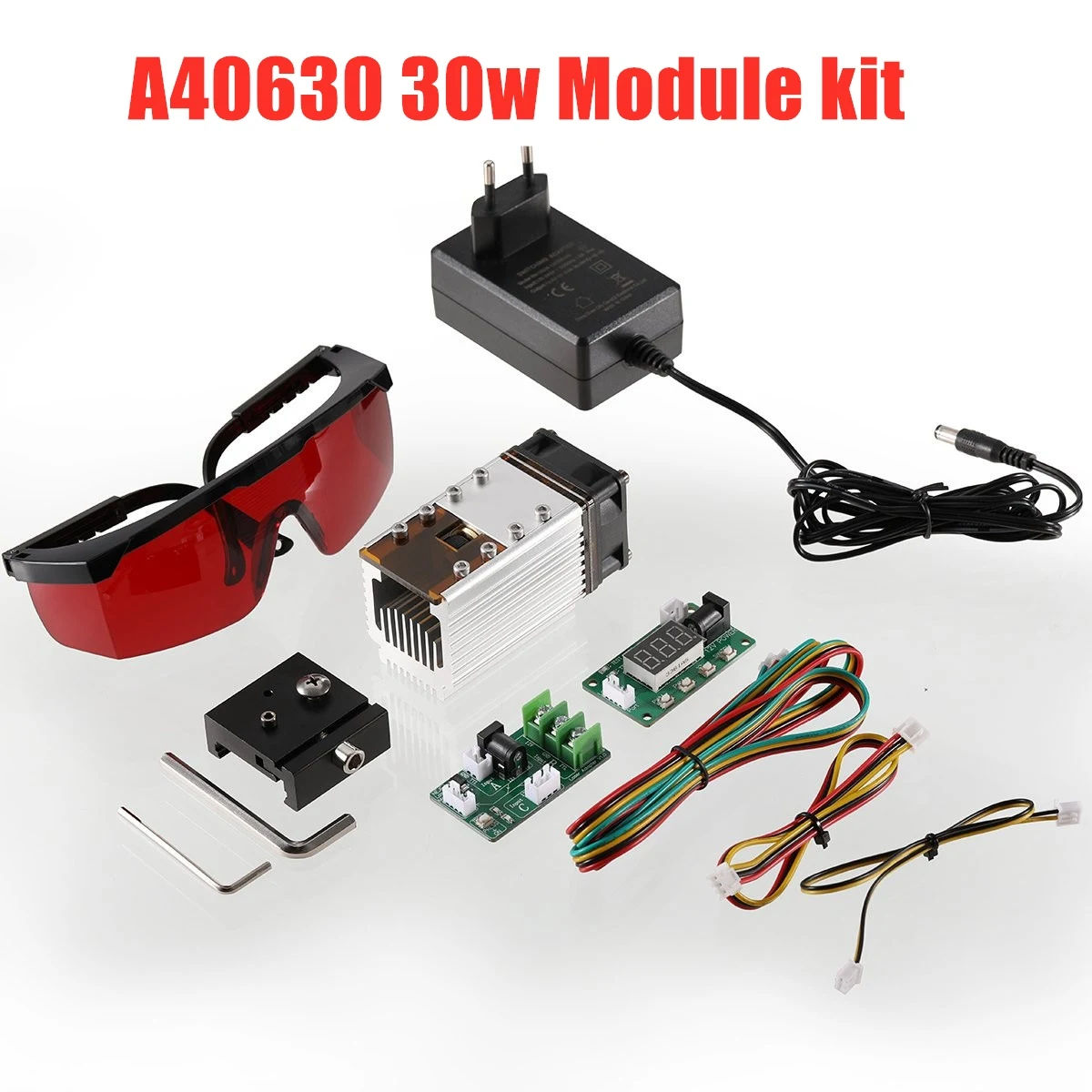 1 x лазерный модуль A406301 x раздвижной слот для карт1 х гаечный ключ1 х l-образный маленький гаечный ключПлата адаптера интерфейса-1 шт.1 x цифровая панель для тестирования1x4Pin Лазерная линия1 x 2pin TTL линия управления1 х адаптер питания 12 В1 x очки