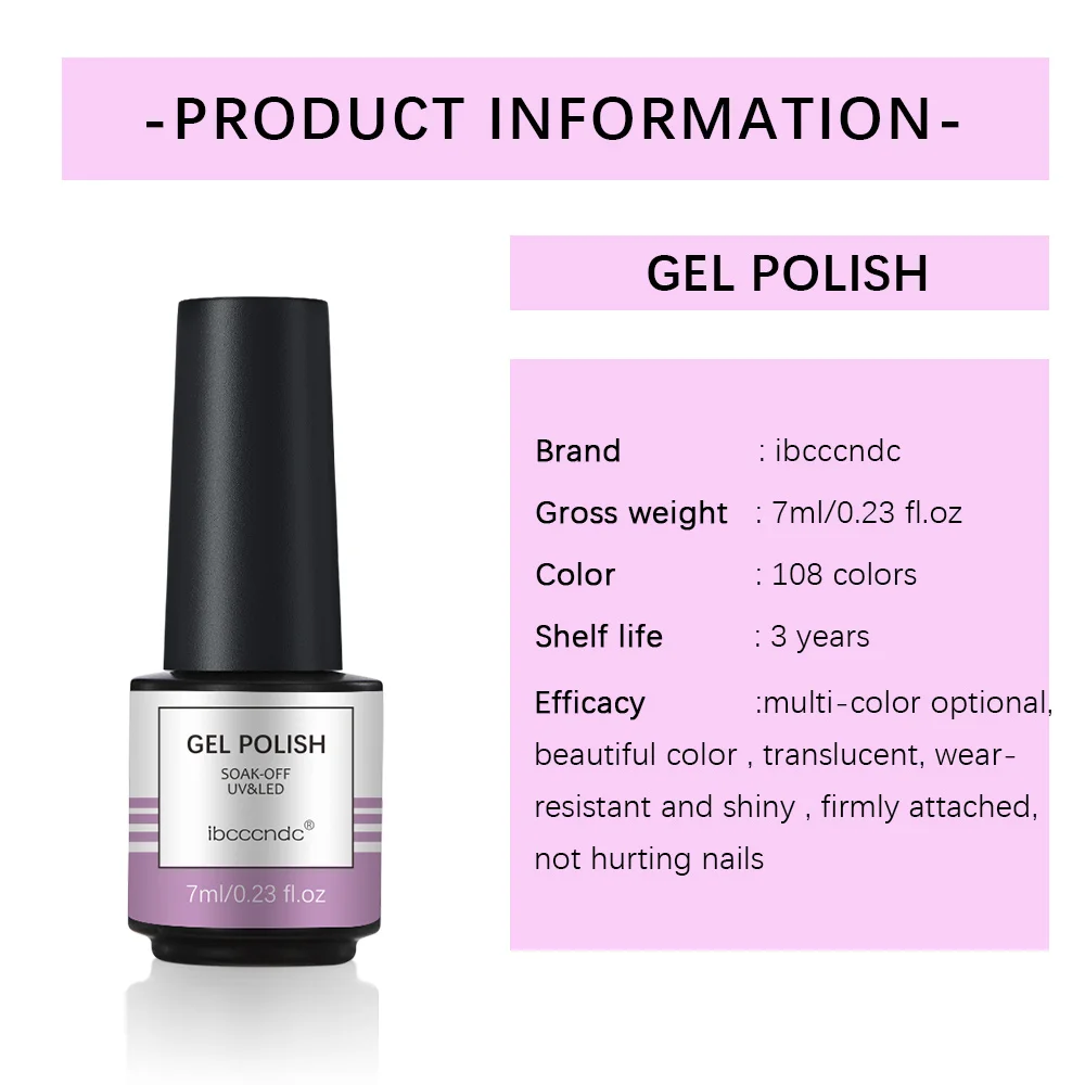 Бренд: ibcccndcЕмкость геля для ногтей: 7 млЕмкость базового верхнего покрытия: 10 млЦвет: 55-72 цвета на выборПосылка:1 шт.
