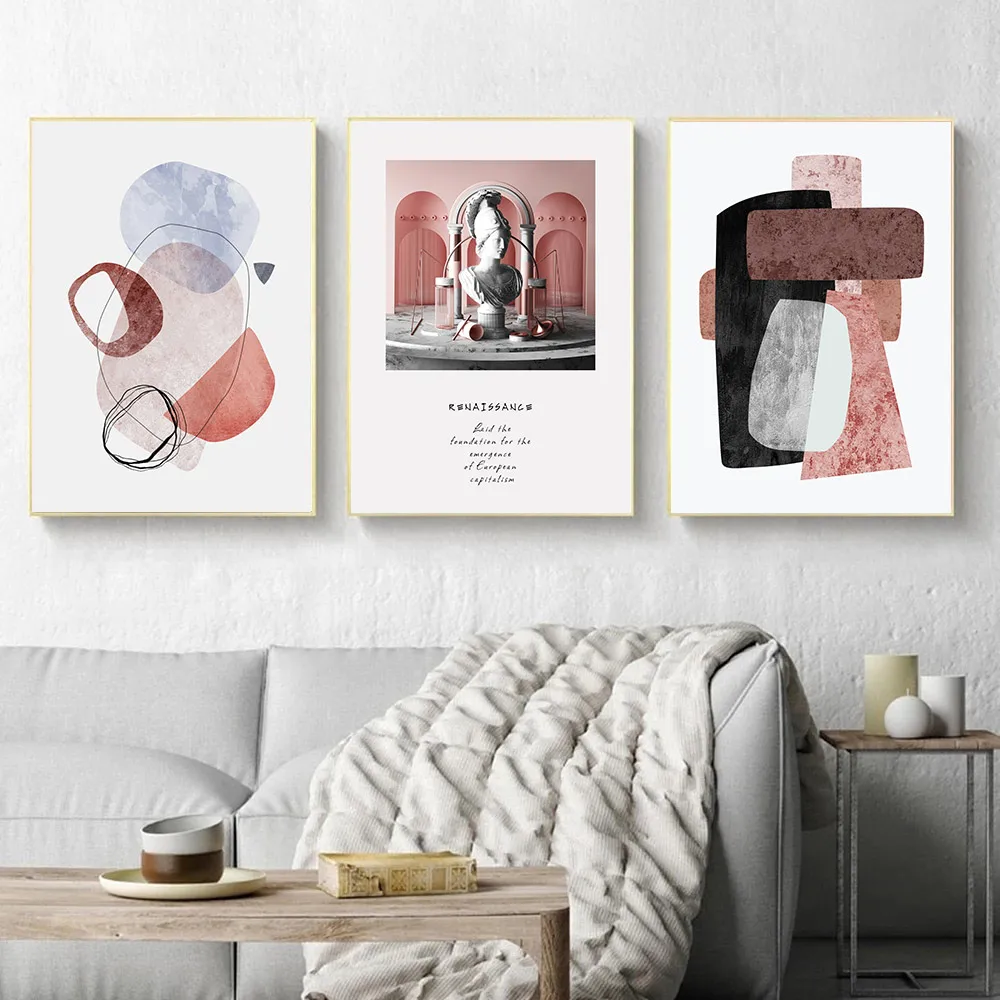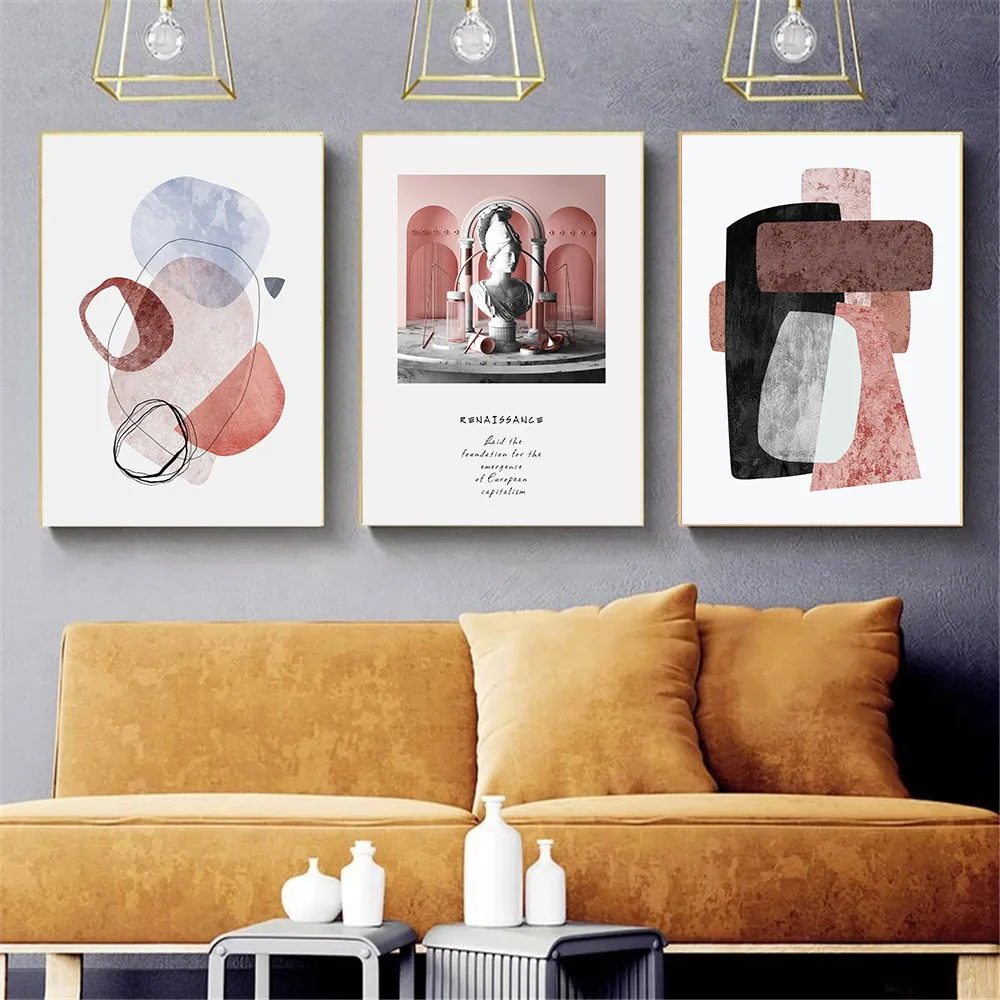 Винтажные цветные блочные плакаты и принты, статуя возрождения, настенное искусство, холст, живопись, геометрический принт, картины, декор для гостиной