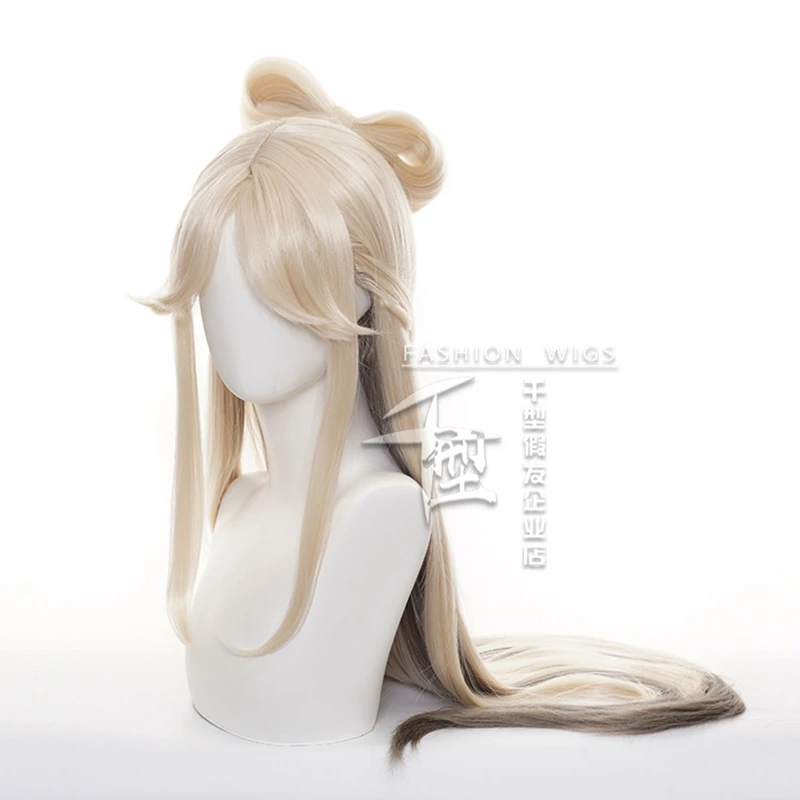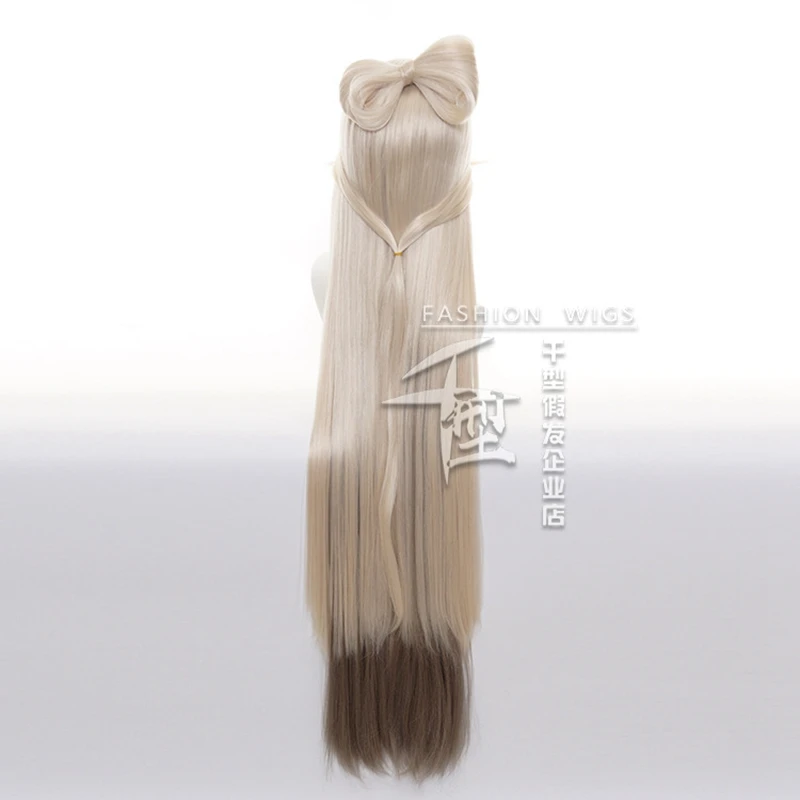 Парик NingGuang для косплея аниме Genshin Impact, Золотой бант, длинные прямые заколки, парик для хэллоуивечерние