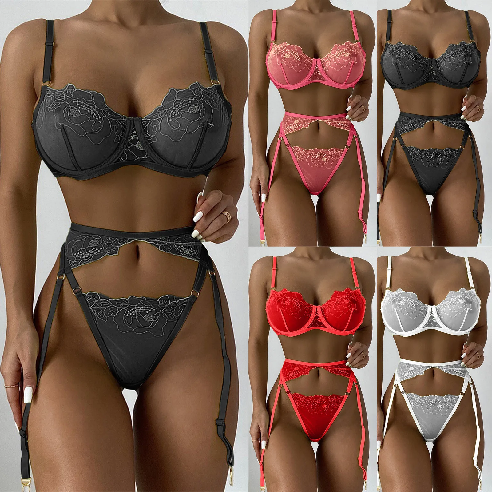 Комплект сексуального нижнего белья из трех предметов для женщин, ж...