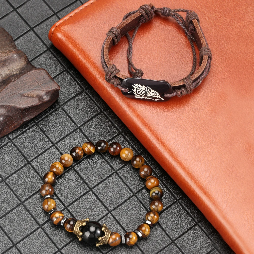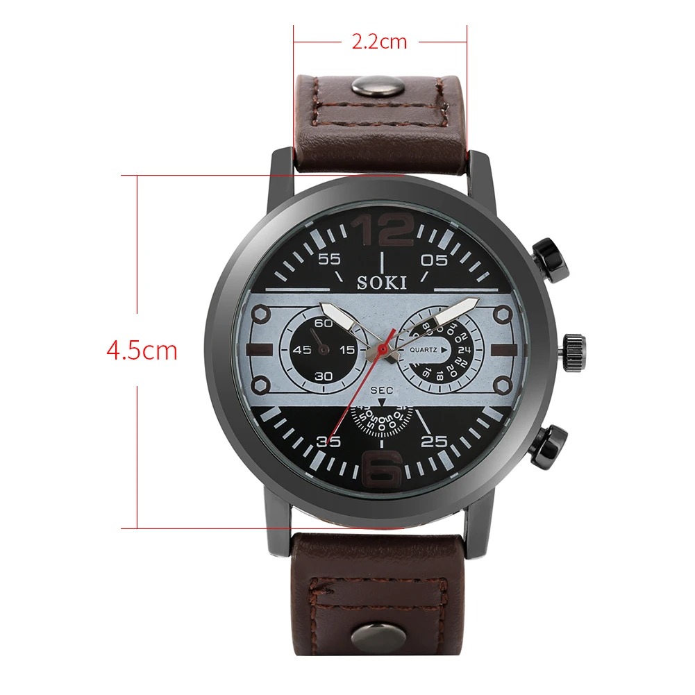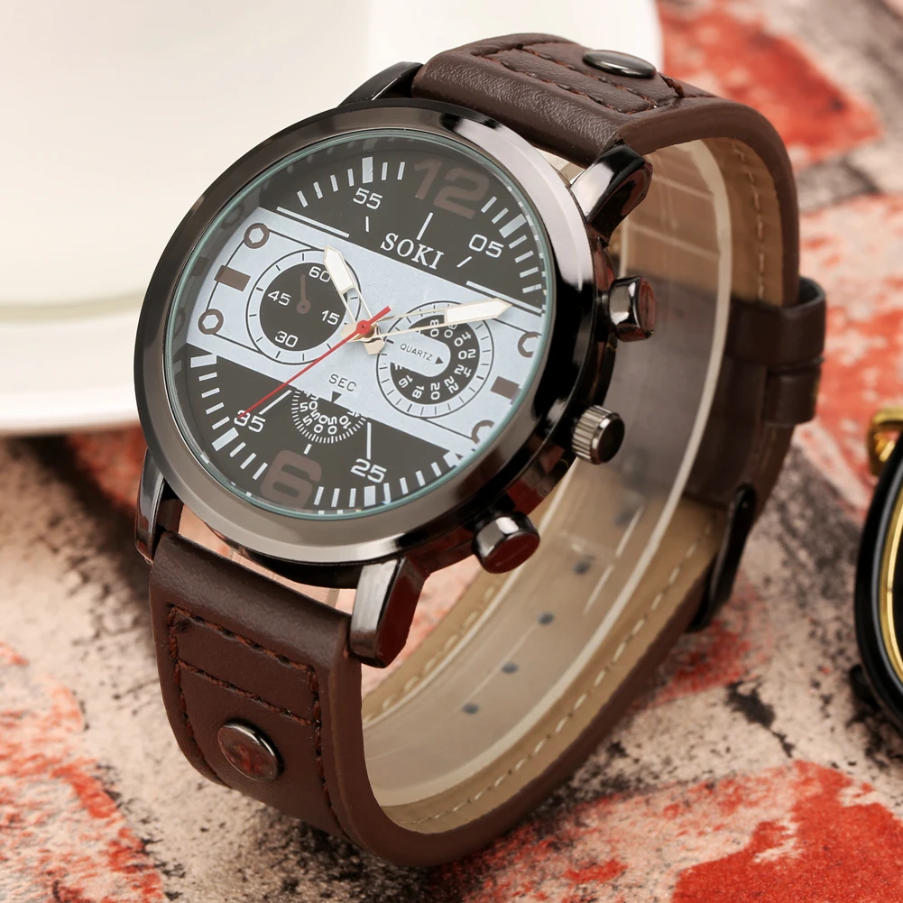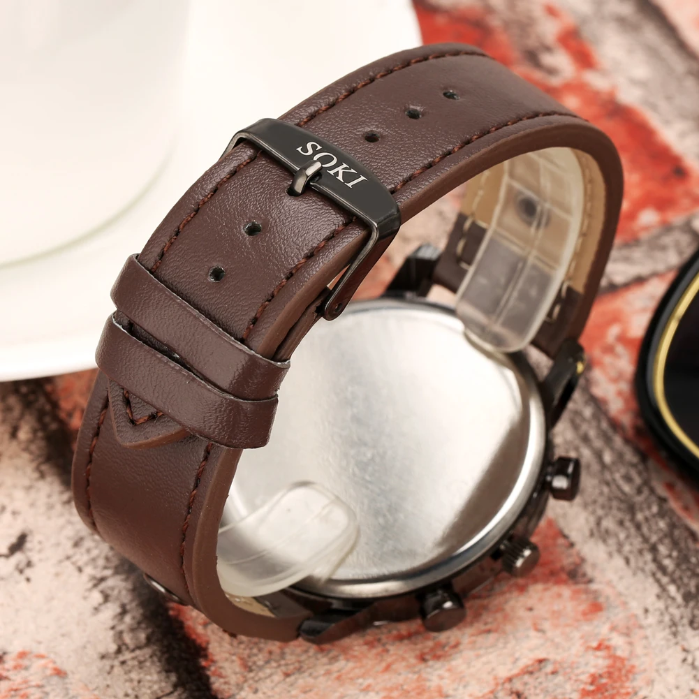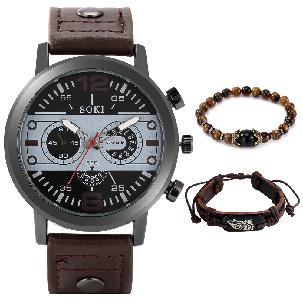 Мужские часы и браслет в стиле ретро, подарочный набор, коричневый кварцевый ремешок из искусственной кожи, часы, мужские браслеты, отличный подарок для парня