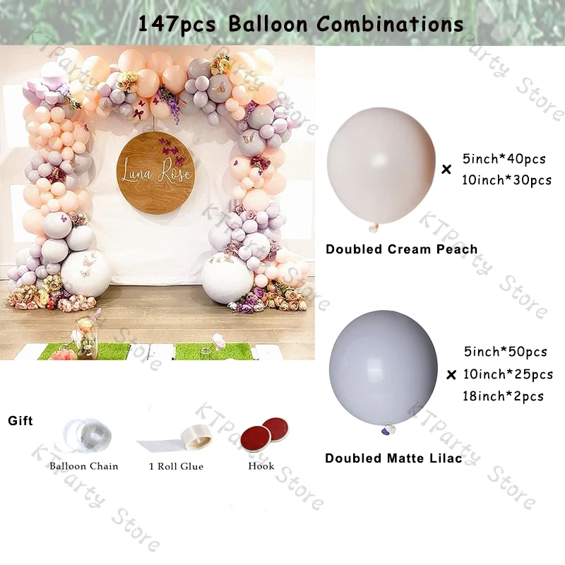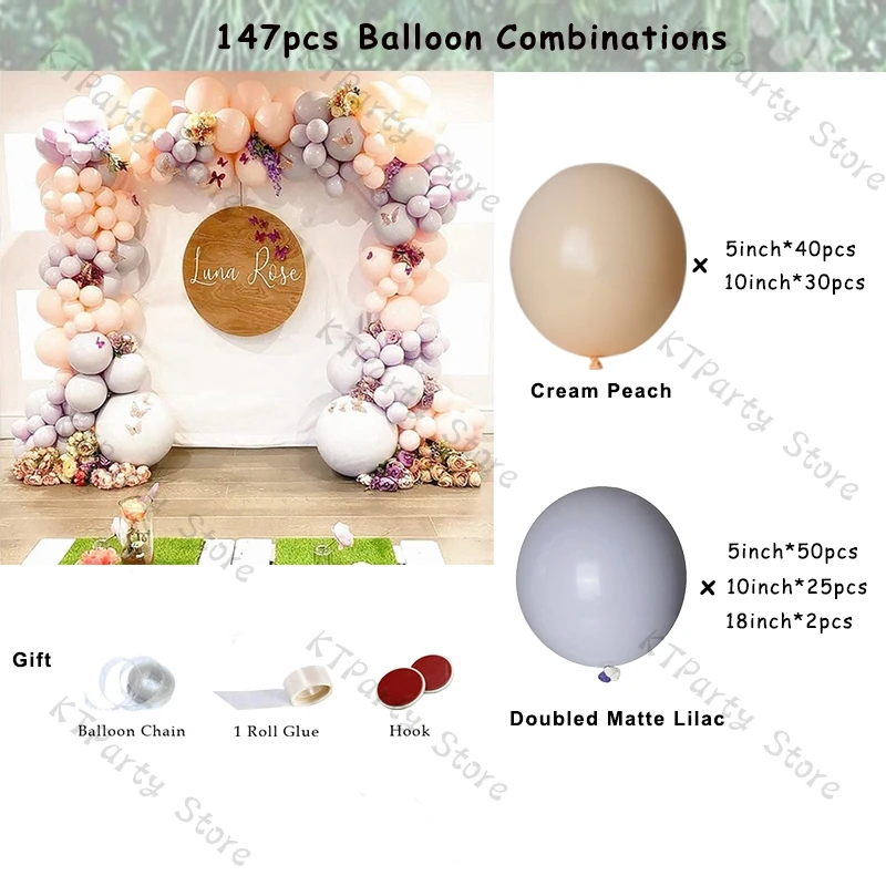 Двойной матовый сиреневый (10 дюймов * 20 шт., 12 дюймов * 5 шт.)Бесплатно: рулонный клей * 1(100 шт)Воздушная цепь * 1(5 м)Крючок * 3