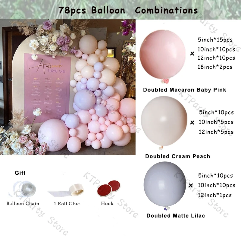 Macaron Baby Pink(5 дюймов * 15 шт., 12 дюймов * 30 шт., 18 дюймов * 2 шт.)