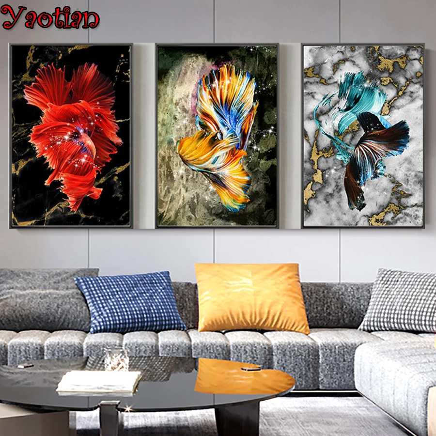Алмазная живопись сделай сам, 3 панели, фантазия, красочная рыба, кои, алмазная вышивка стразы, полностью квадратные, круглые, сверло, 5d, мозаичный узор