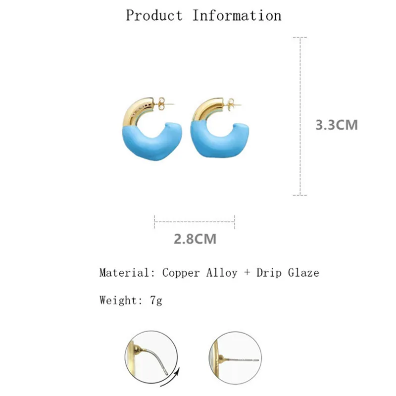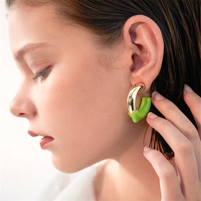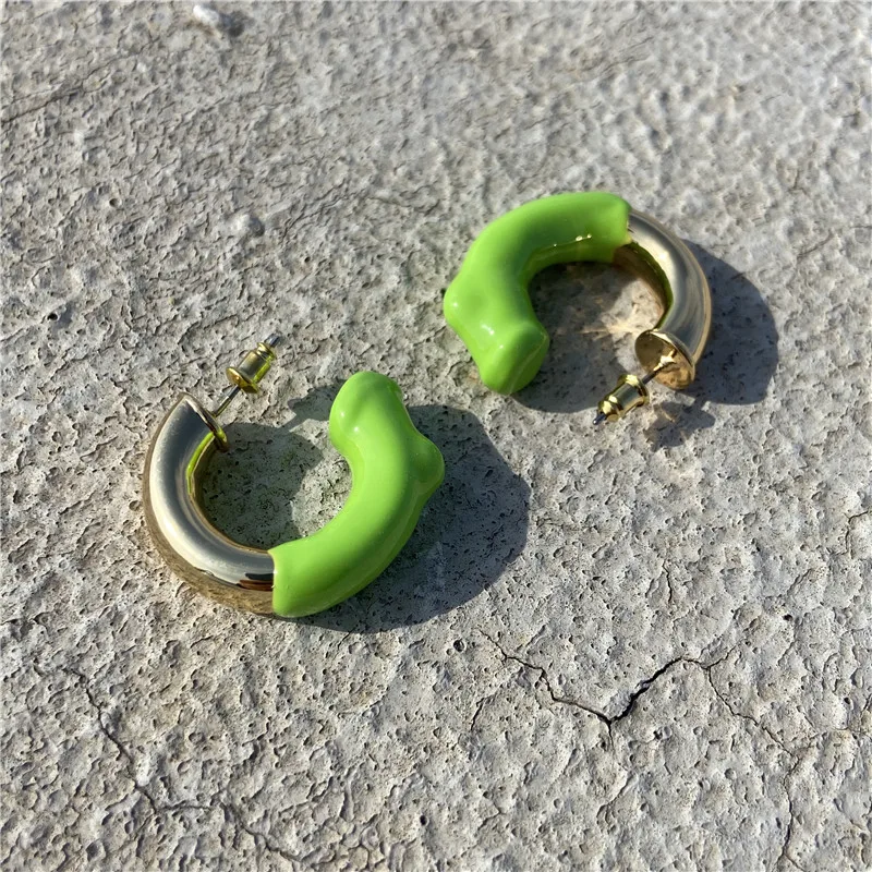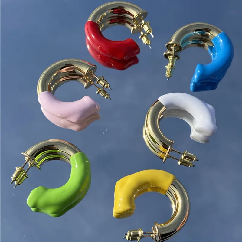 Женские серьги-кольца, разноцветные, с эмалью, в форме буквы С, лето 2021