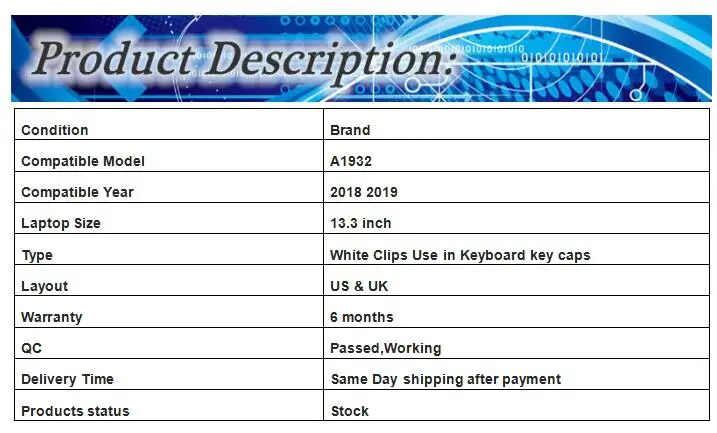 Набор для клавиатуры A1932, A1989, A1990, 13, 15 дюймов, 2018