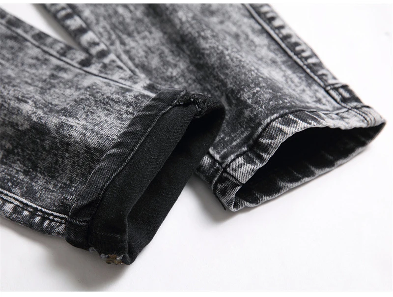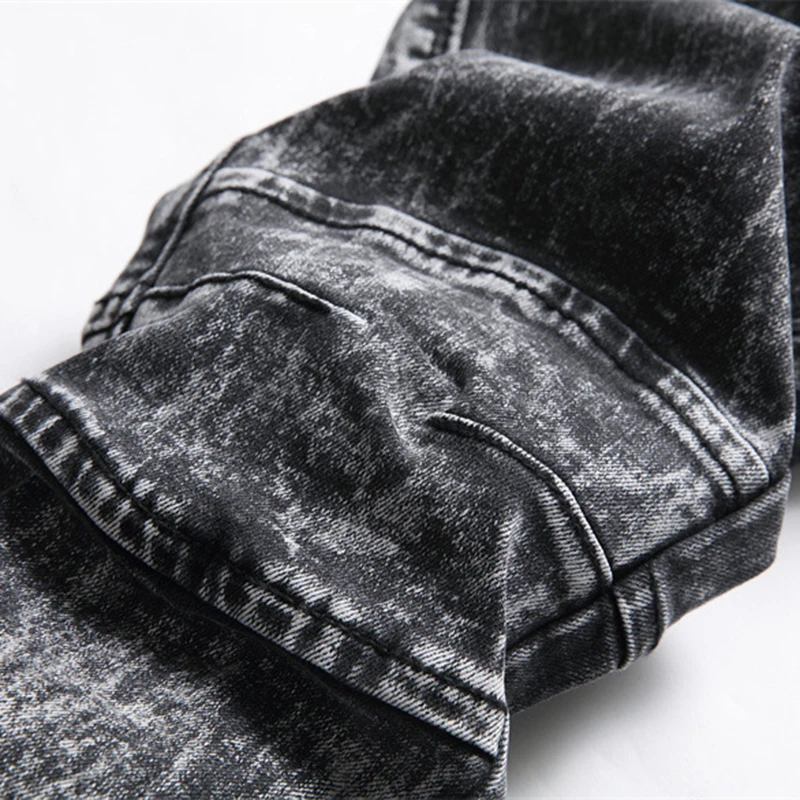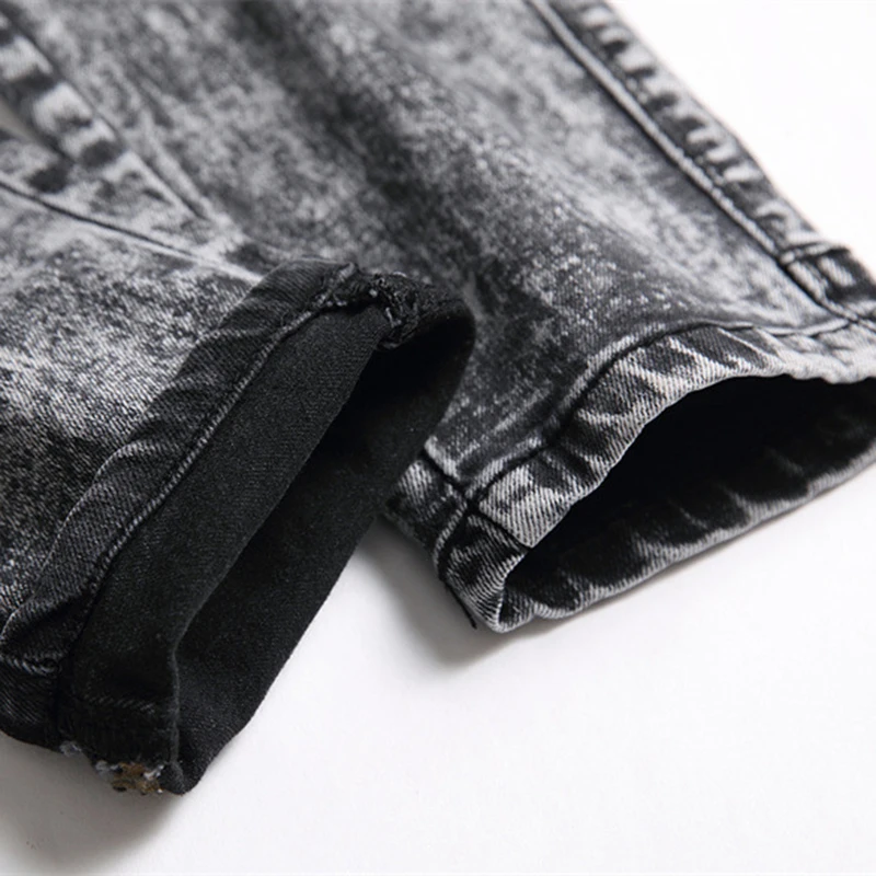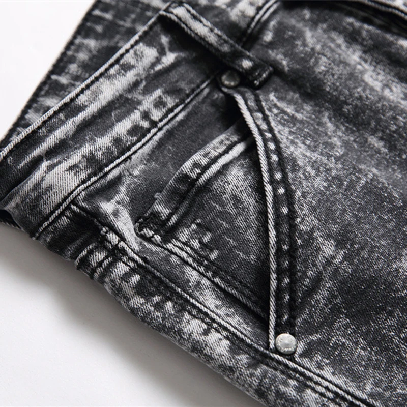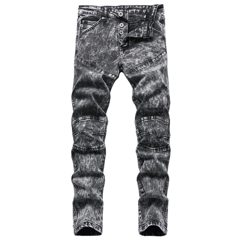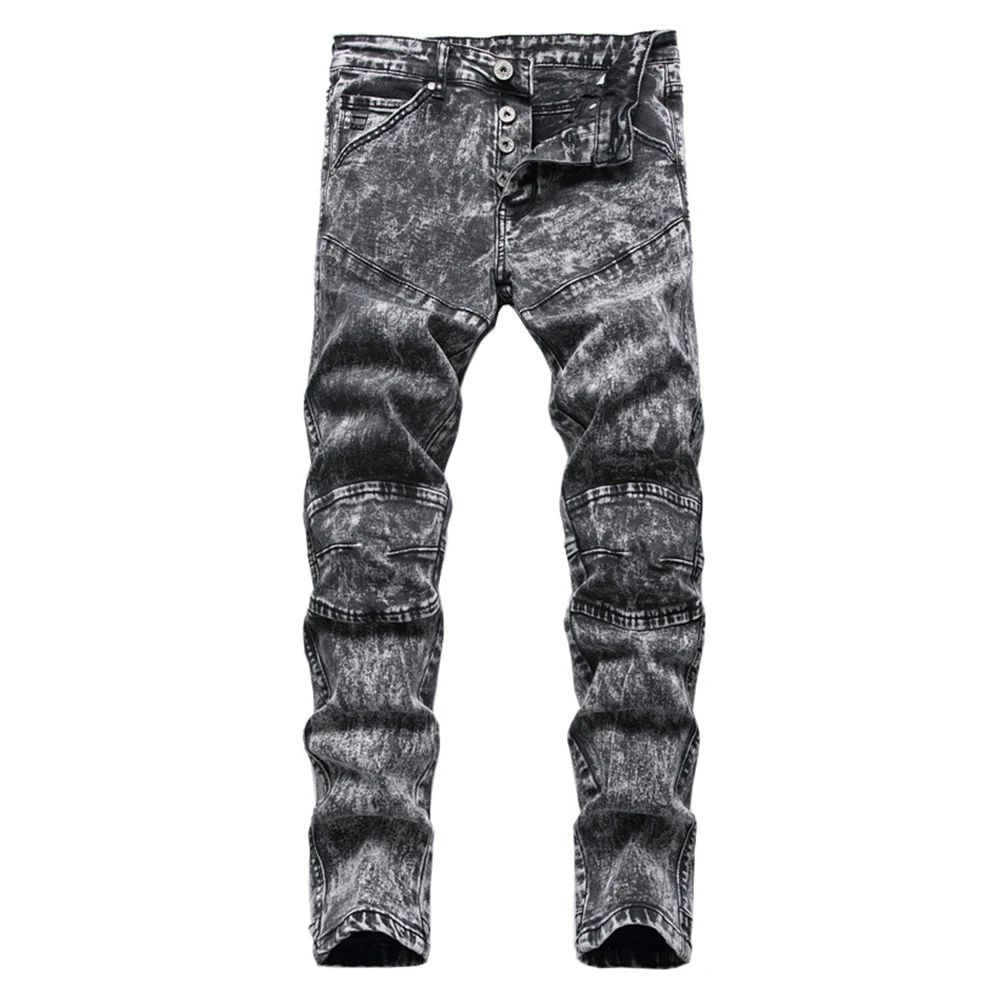 Мужские джинсы стрейч, черные, серые, зауженные прямые байкерские брюки с пуговицами