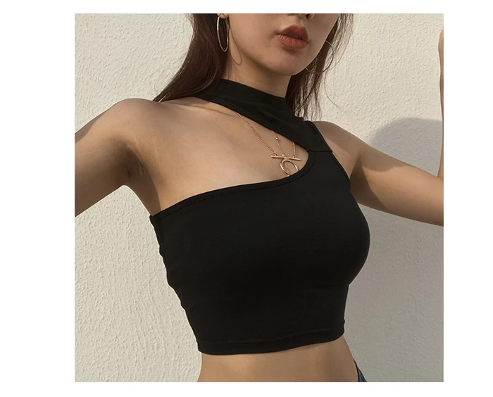 Укороченный Топ женский без рукавов, пикантная Черная майка-халтер,...