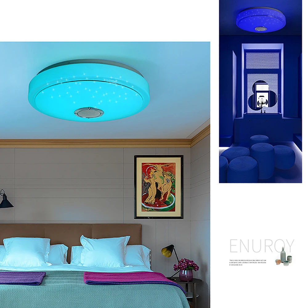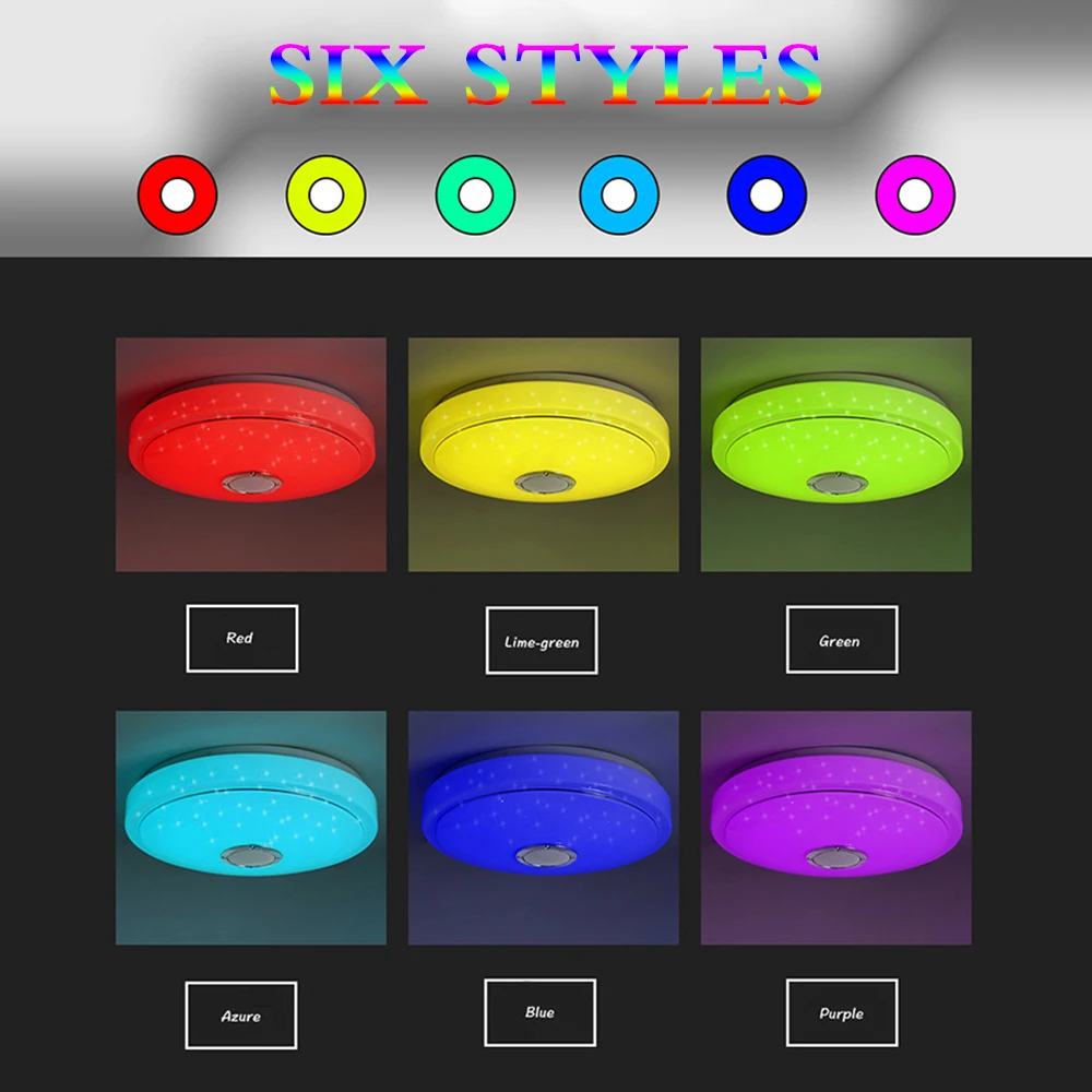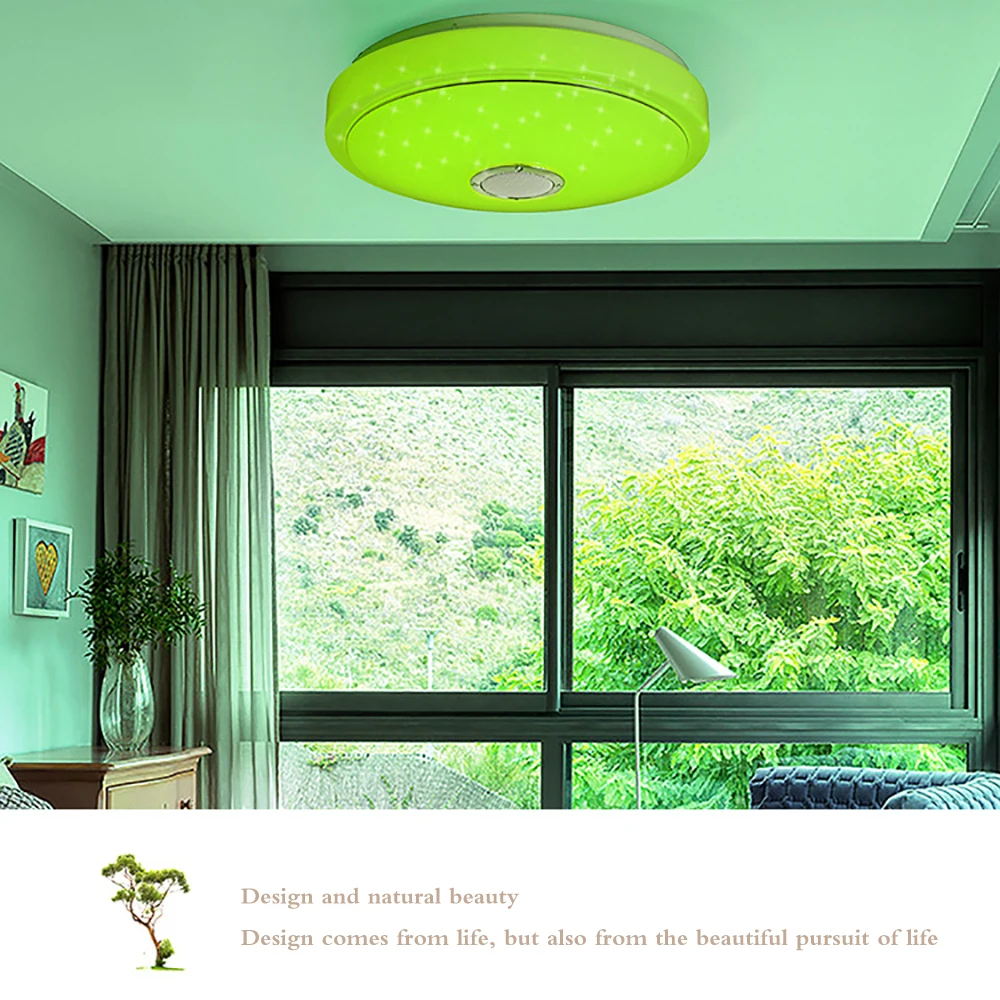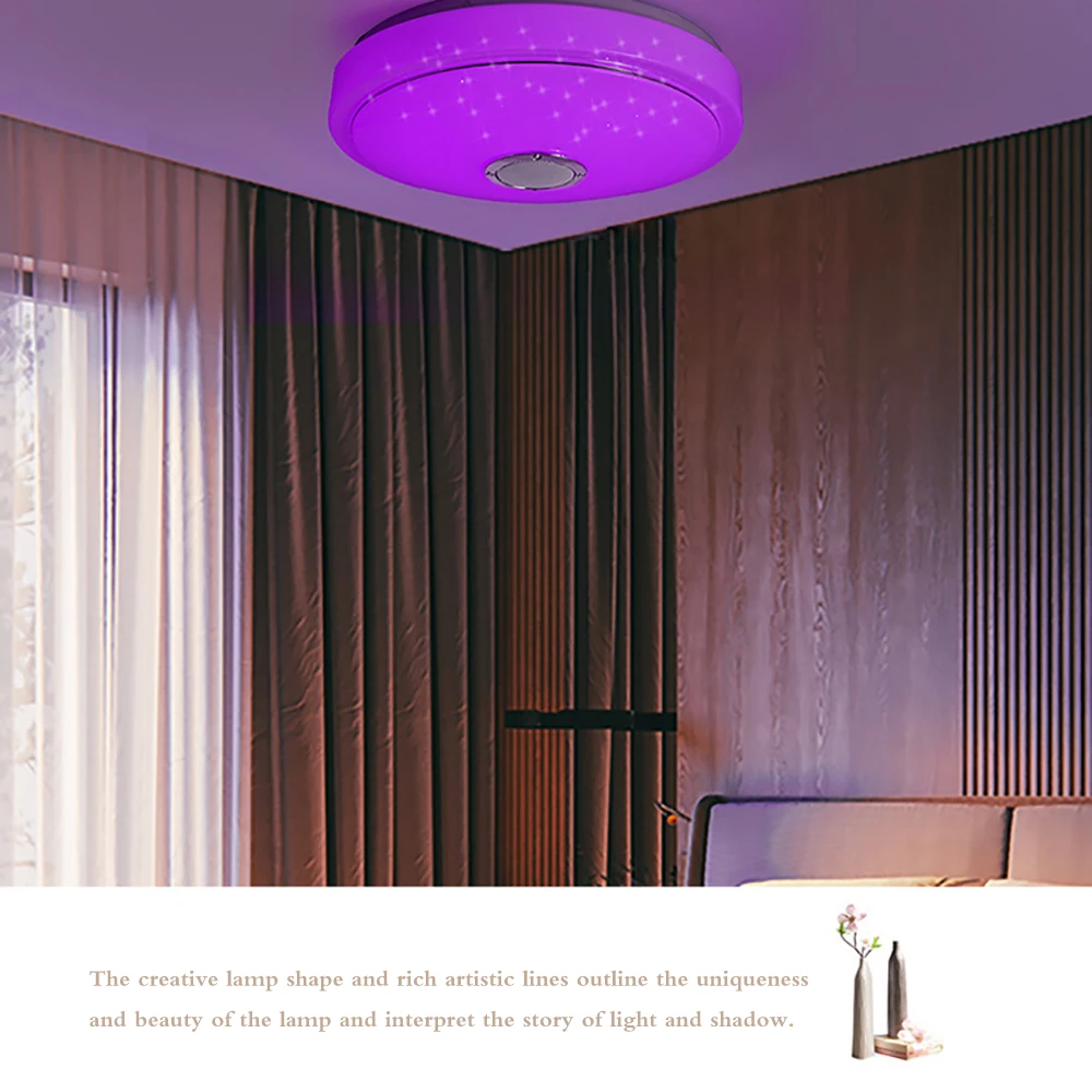 Мобильное приложение и Bluetooth могут регулировать яркость, менять цвет, дистанционное управление может включать и выключать светильник, регулировать яркость и цвет, воспроизводить песни, регулировать громкость, это умный потолочный светильник, который изменит вашу концепцию потолочный светильник, это как верный компаньон, который позаботится о вашем настроении.