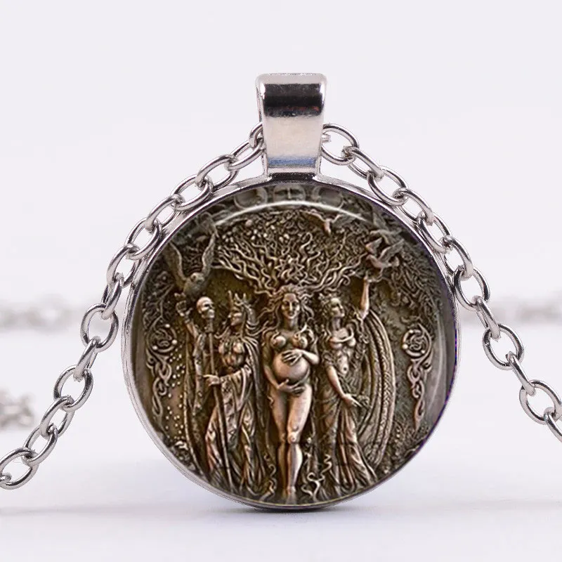 Модный винтажный амулет Wiccan с подвеской в виде трехлунной богини, волшебный амулет, ожерелье, стеклянные ювелирные изделия, подарок для женщин, чокер