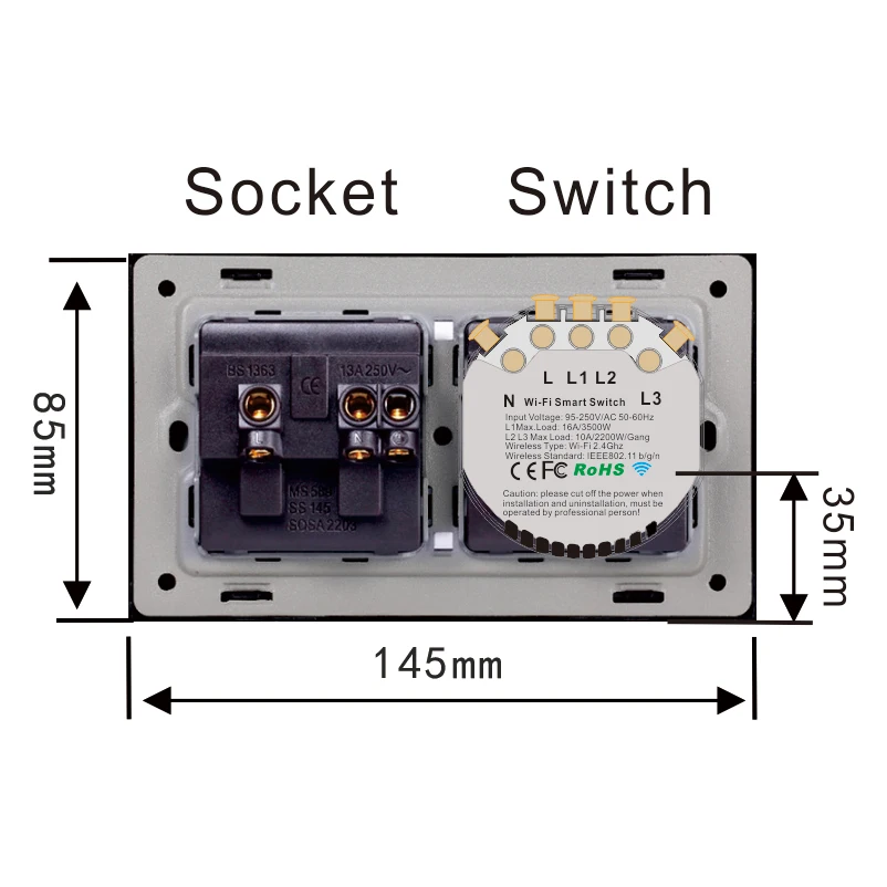 Maximum power of socket16A/3500W