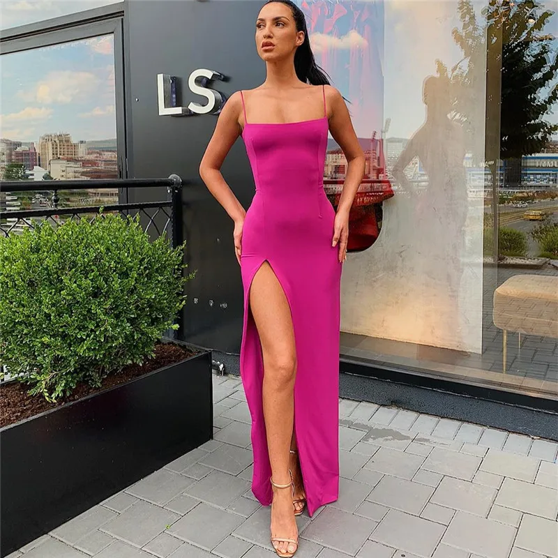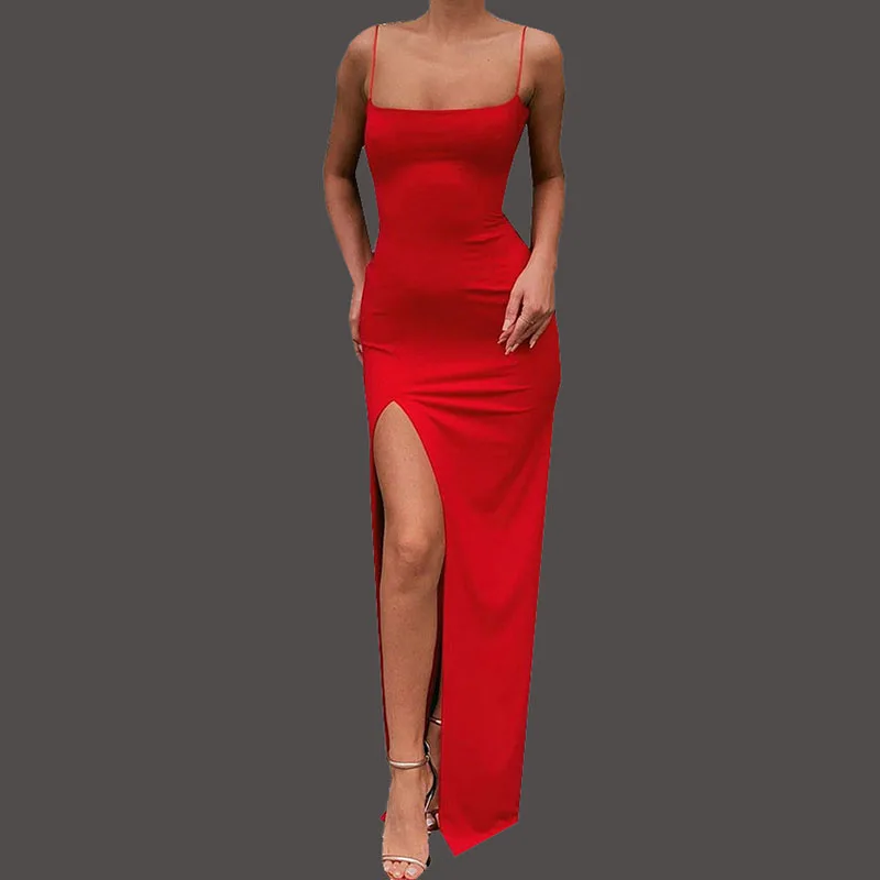 Платье женское эластичное длинное с открытой спиной, пикантный топ на бретелях с разрезом, без рукавов, Клубная одежда, вечернее праздничное, 4XL, на лето