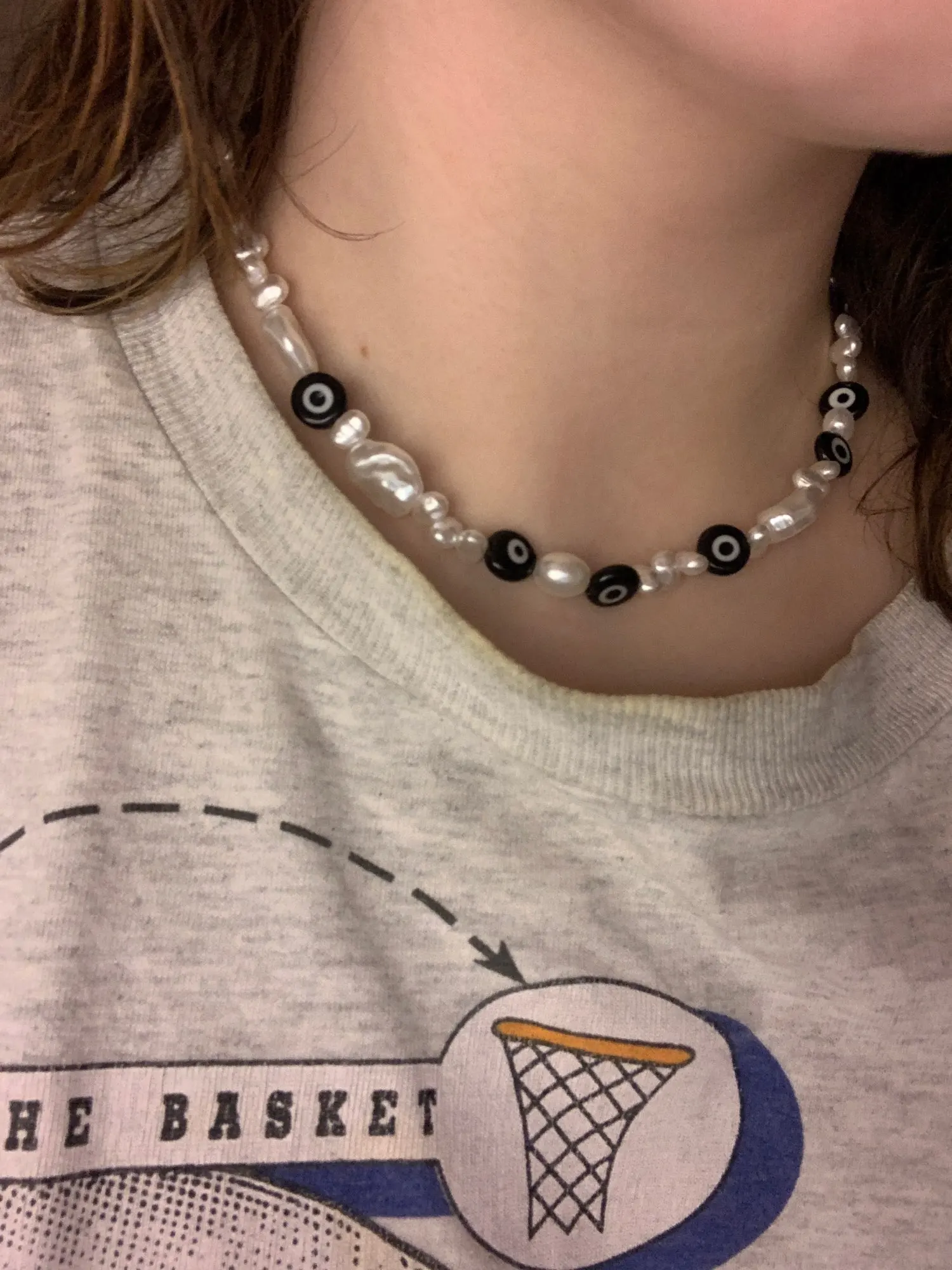 Очень красивое ожерелье! Мне нравится, как жемчуг на ощупь, и у него тоже хорошая длина; Не слишком длинная и не очень короткая.