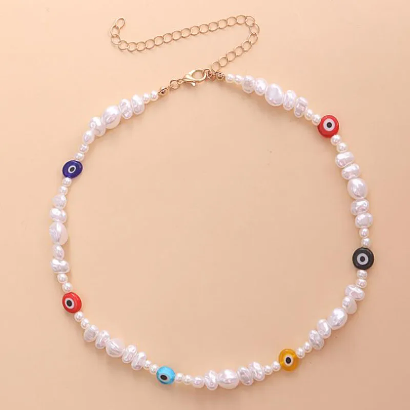 Новое корейское жемчужное ожерелье с красочными бусинами, очаровательное эффектное короткое ожерелье-чокер от сглаза для женщин