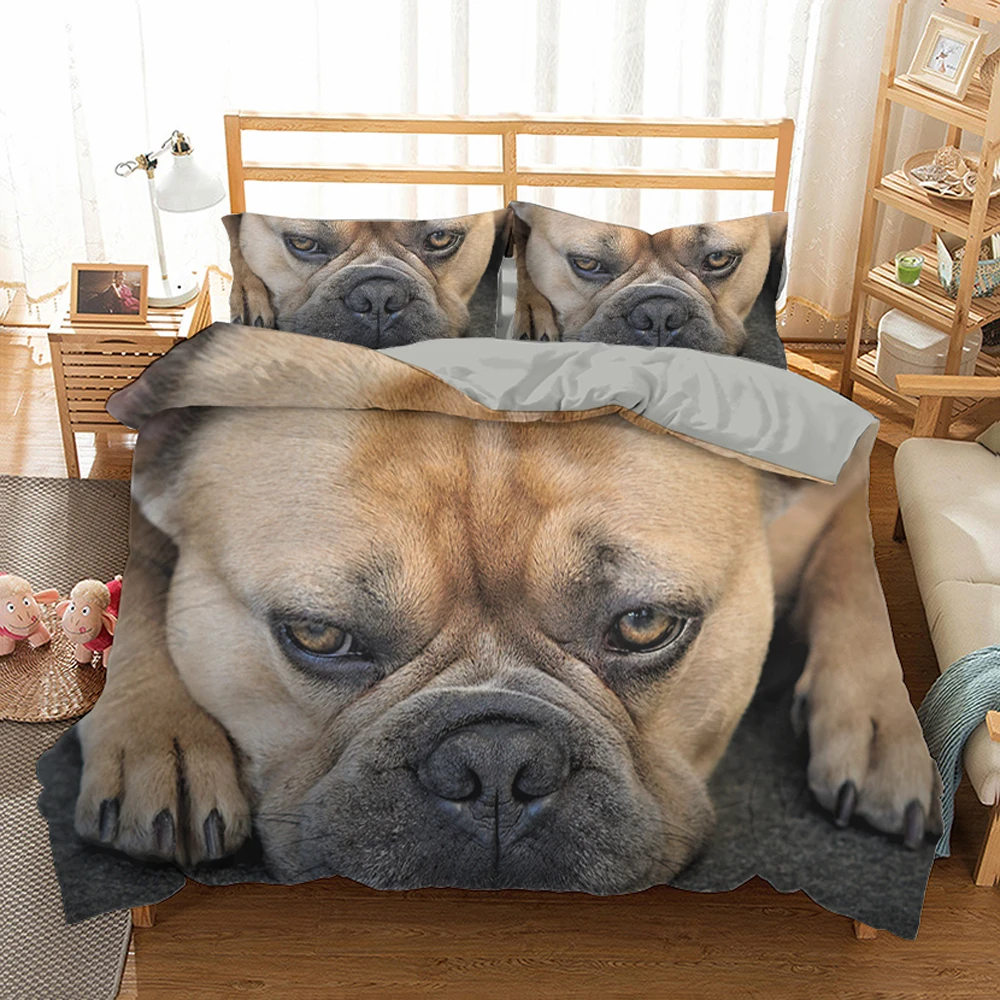 Комплект постельного белья с 3d рисунком французского бульдога, пододеяльник, Королевский размер, пододеяльник, наволочка, 23 шт.