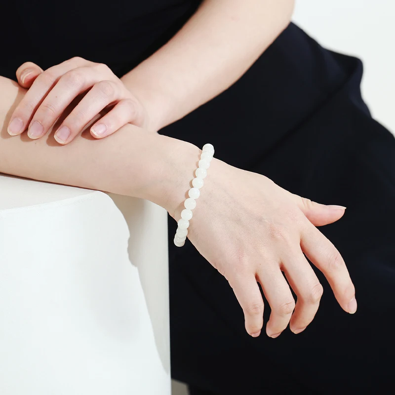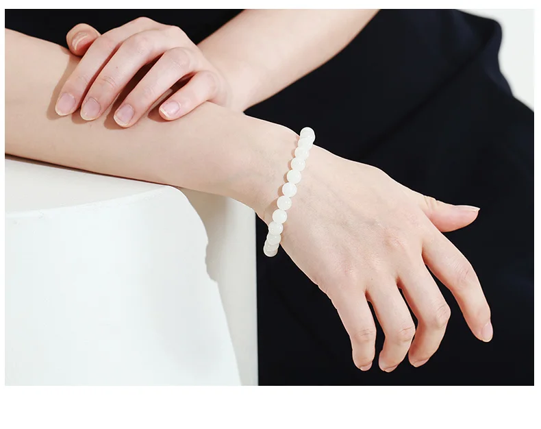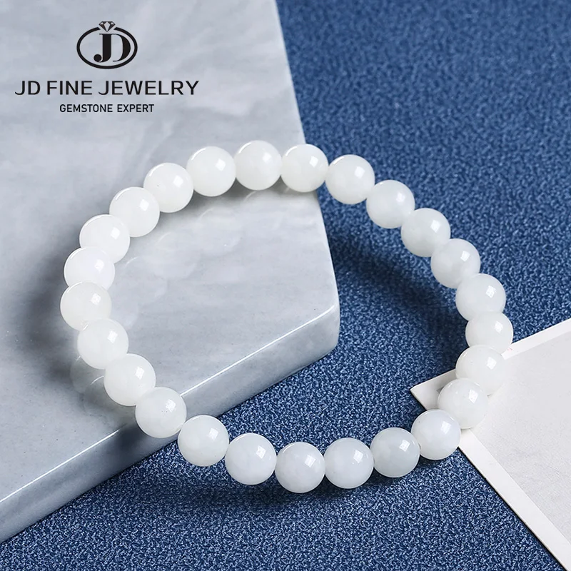 Браслеты JD 8 мм из натурального нефрита с бисером, молочно-белые, Исцеляющие нефритовые бриллианты для пар, подарок на день рождения