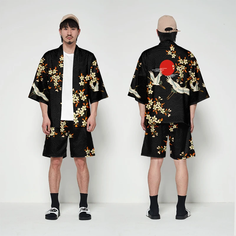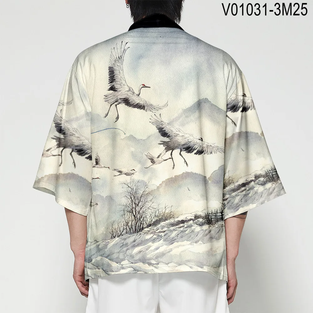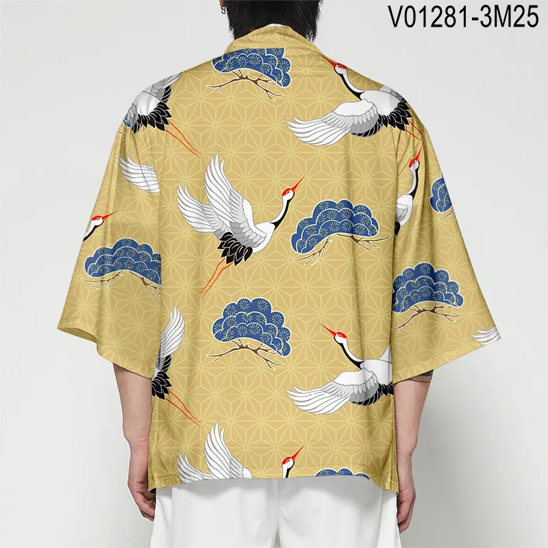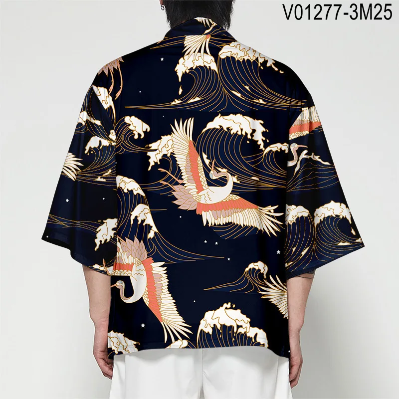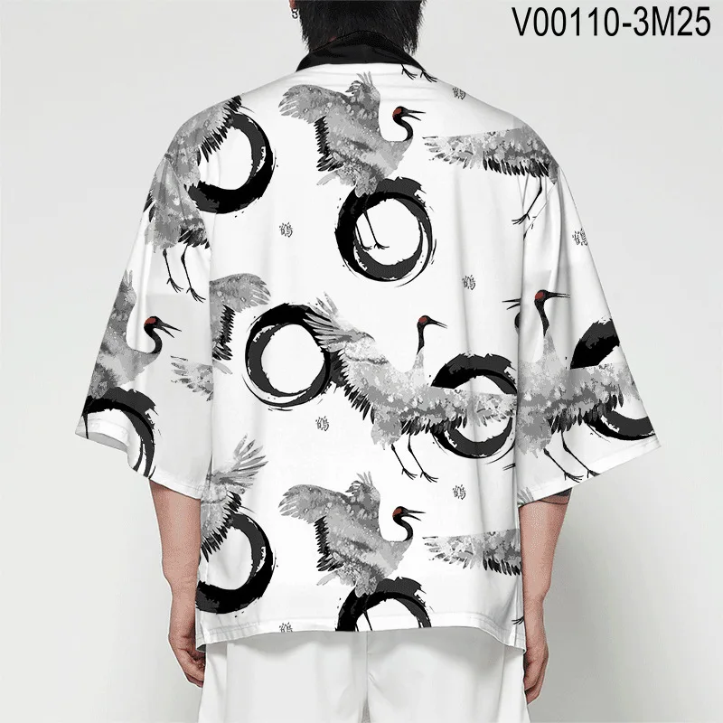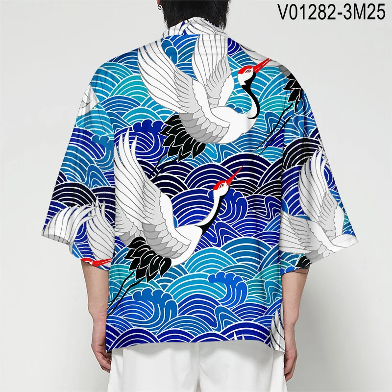Японские летние топы, уличная мода, юката, Женская традиционная одежда хаори, новинка 2022, женское кимоно, 3D футболка, самурайский журавль