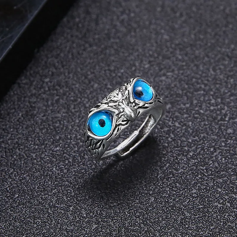 Кольцо унисекс, винтажное регулируемое с голубым глазом в виде совы...