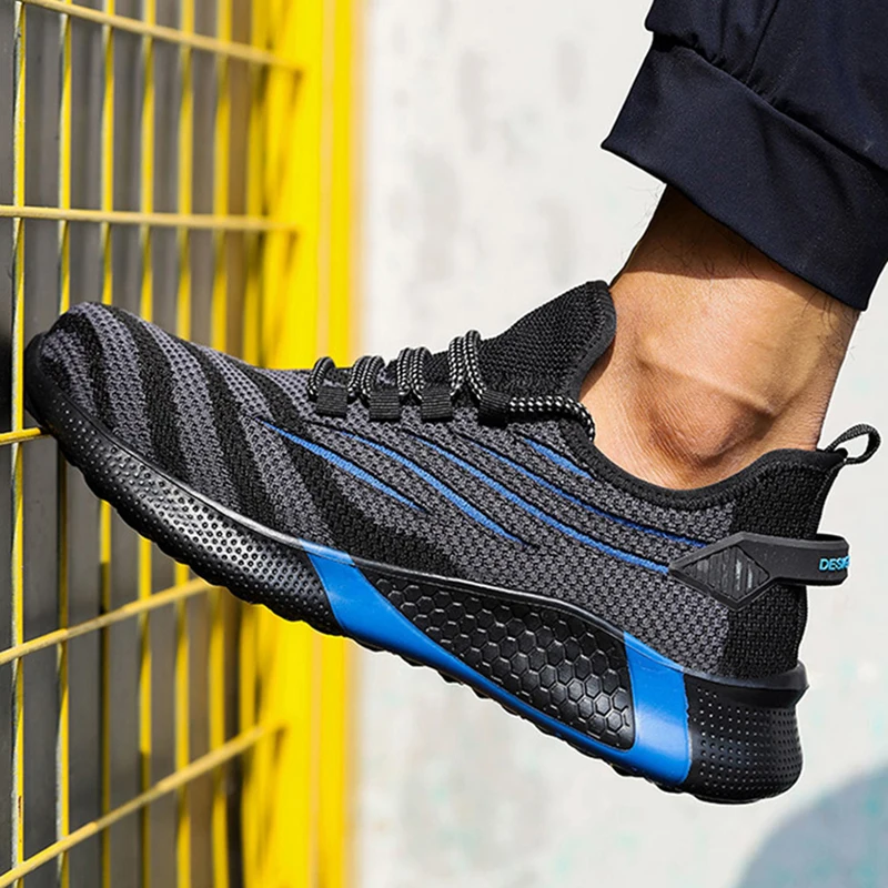 Легкие мужские кроссовки для защиты от ударов, Спортивная безопасная обувь, кроссовки с укрепленным стальным носком, обувь с защитой от проколов