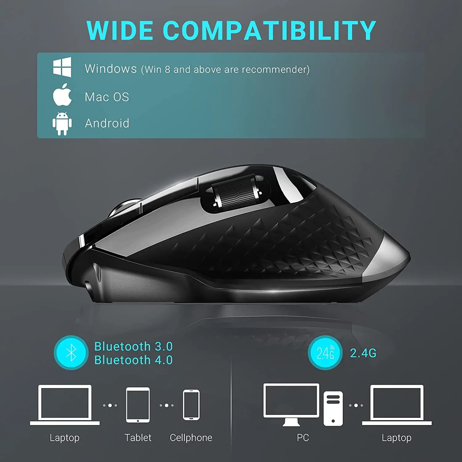 【Эргономичный дизайн и регулируемый DPI】Эта беспроводная bluetooth-мышь предназначена для правшей, рук и большого пальца обеспечивает лучшую поддержку. 6 efficient кнопок, 4 Точек на дюйм уровней (600/1200/1600/3200), которые позволяют беспрепятственно контролировать скорость мыши и корректирует чувствительность мыши.
