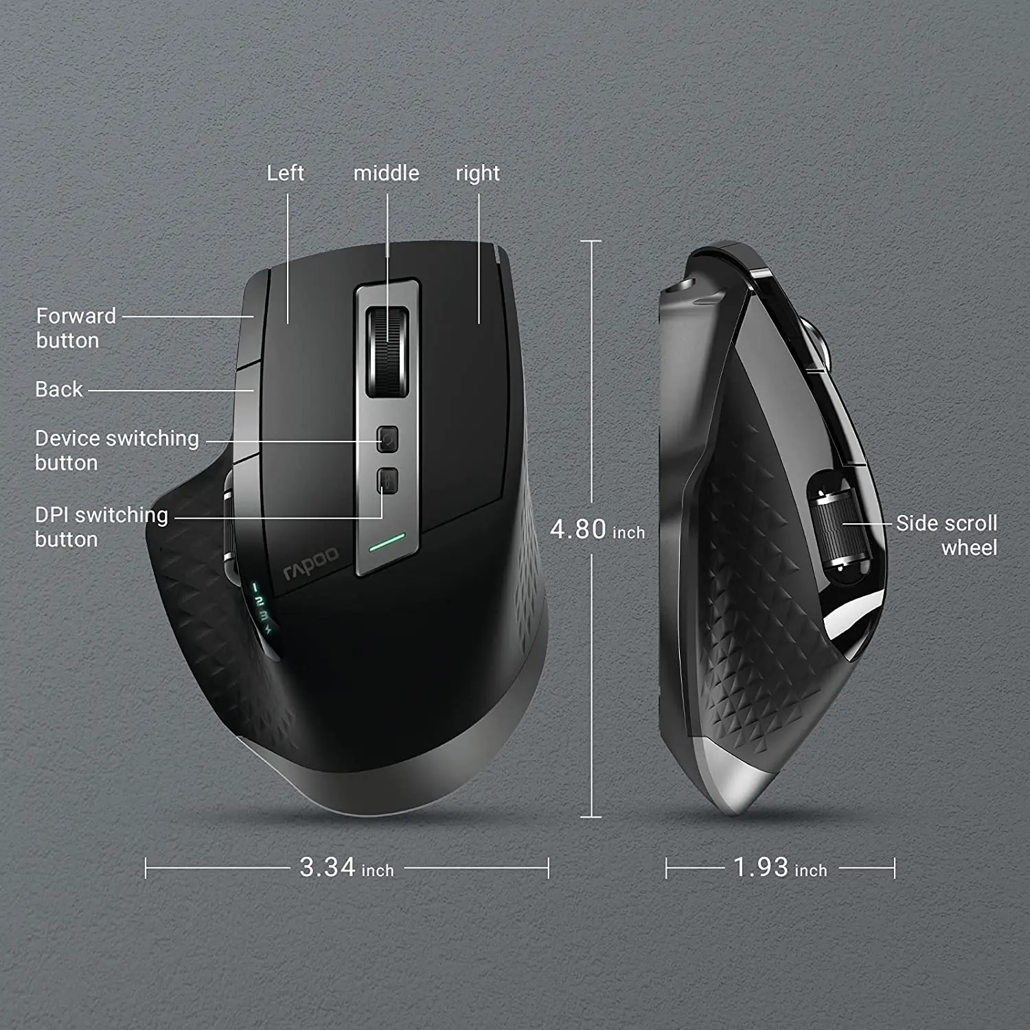 Беспроводная мышь RAPOO MT750S/ MT750L, многофункциональная bluetooth-мышь для ноутбука, беспроводная мышь до 3200 DPI, перезаряжаемая эргономичная мышь с боковым колесом, высокоточная лазерная мышь для компьютера MacBook