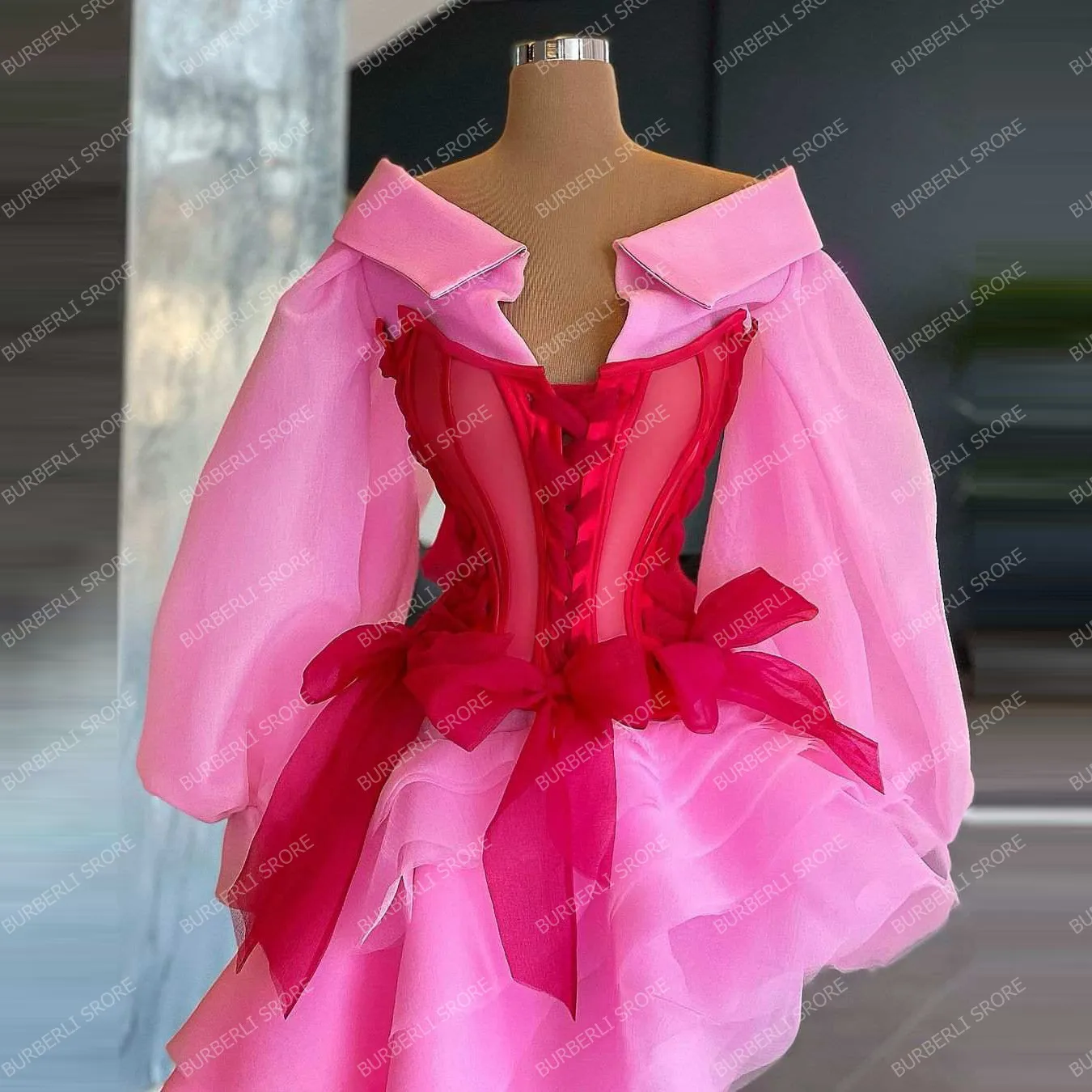 Женское Тюлевое короткое платье с открытыми плечами, красным корсетом и оборками