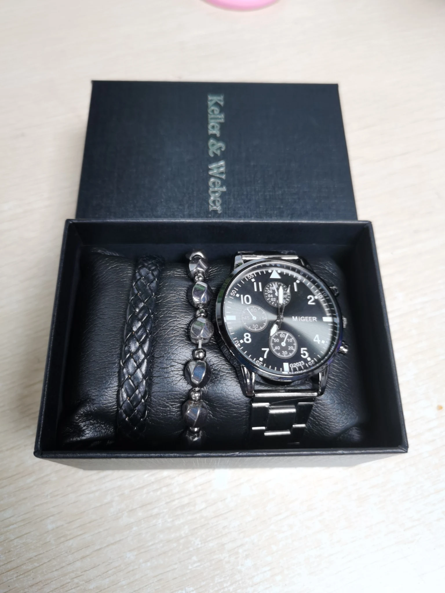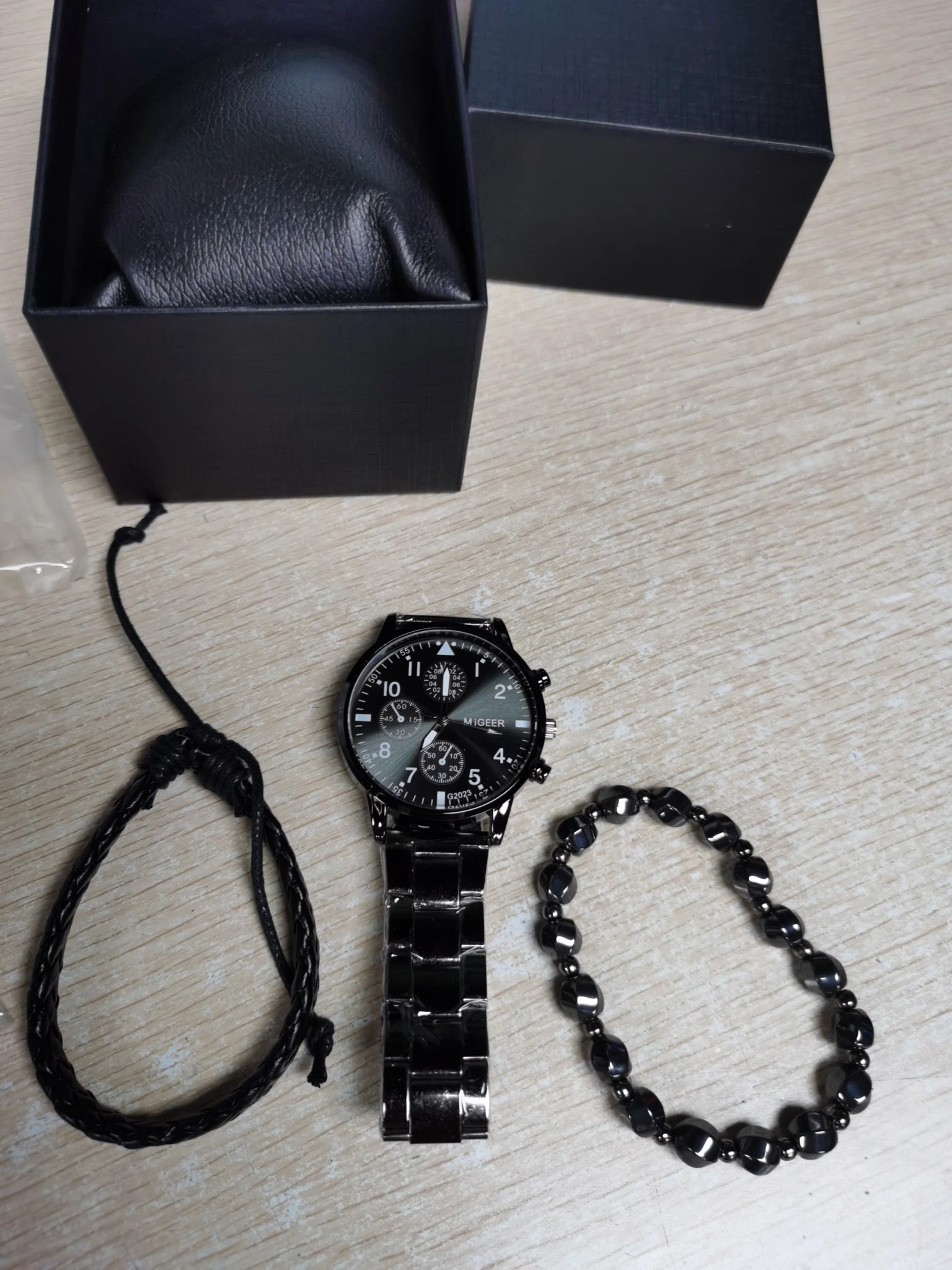 Подарочный набор для мужчин, черные часы с регулируемым браслетом, ручной работы, для парня, мужа