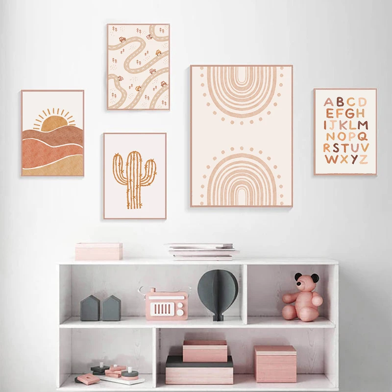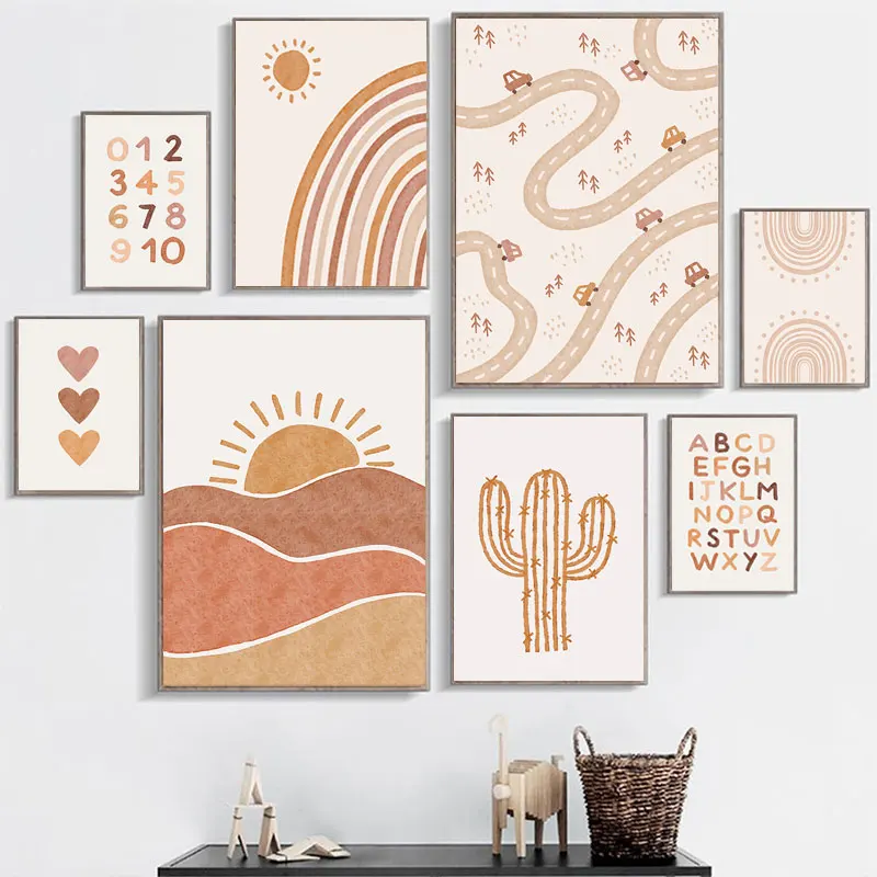 Детские Настенные постеры солнце Радуга Холст Картина Алфавит печат...