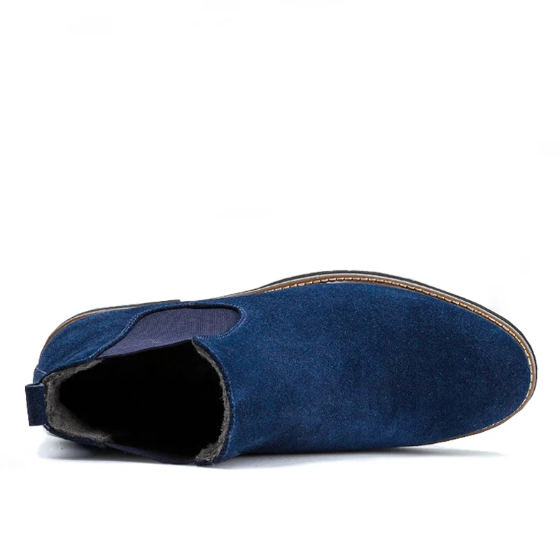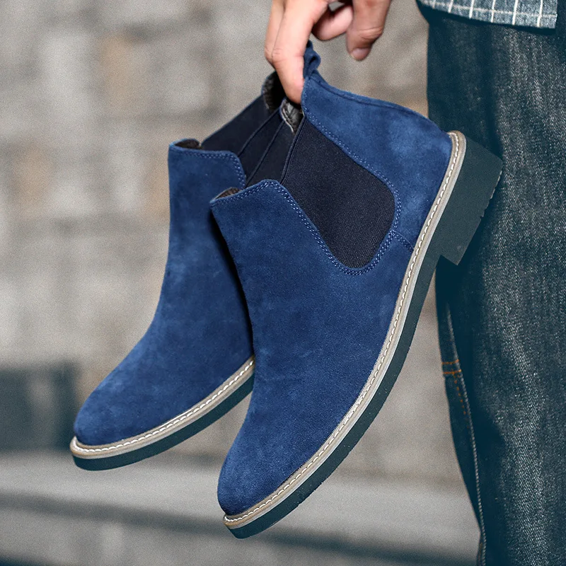 Мужские замшевые ботинки челси, коричневые ботильоны из коровьей замши, без застежки, с круглым вырезом, зима 2021