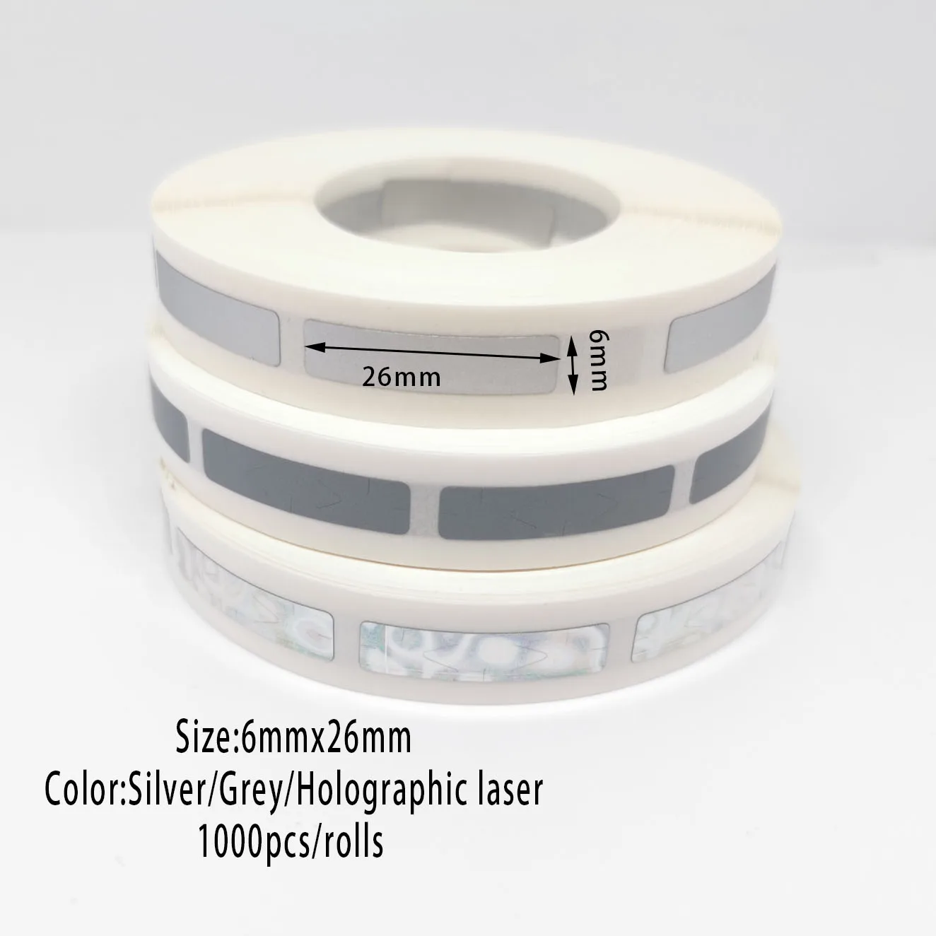 Shengshijie 6 мм x 26 мм 1000 шт.рулон, наклейка с царапинами, этикетка, серыйсеребристыйголографический лазер для обложки, карты, свадьбы, игры, бизнеса