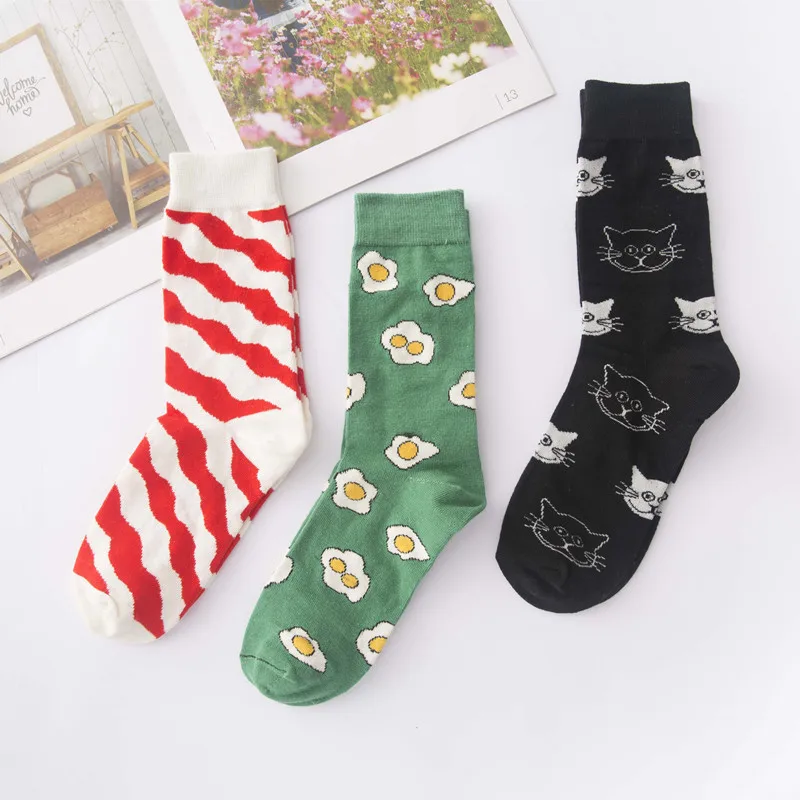 Милые Креативные высококачественные модные смешные носки в стиле Харадзюку с рисунком в виде яйца, еды, коровы, кота, милые носки