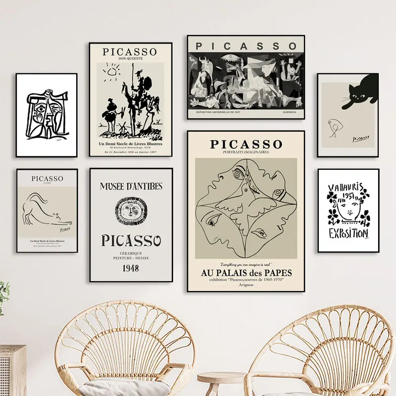 Черно-белая винтажная абстрактная Настенная картина Пикассо на холсте скандинавские постеры и принты декоративная картина для декора гостиной