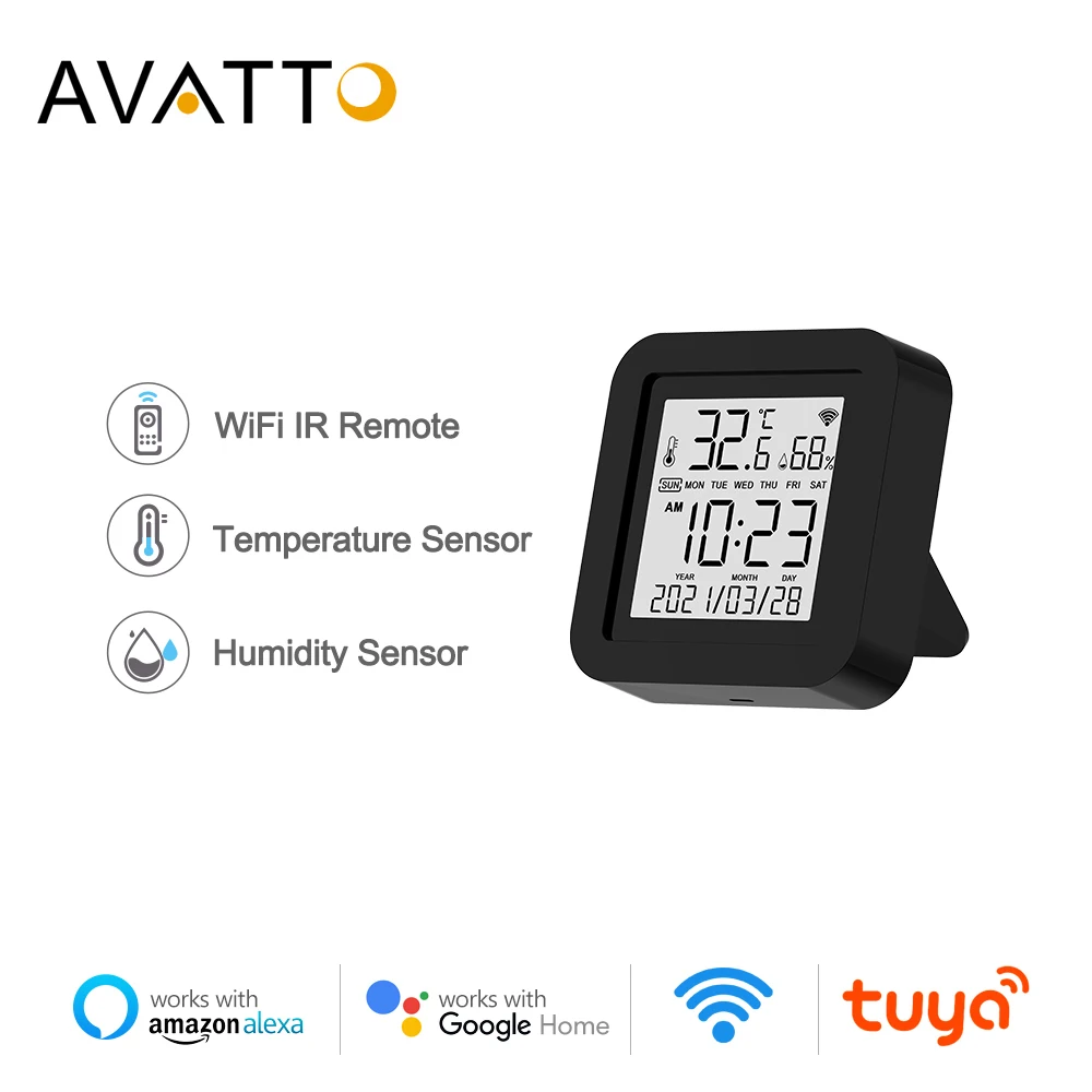 Универсальный инфракрасный пульт дистанционного управления AVATTO с дисплеем датчика температуры и влажности, работает с Alexa Google Home