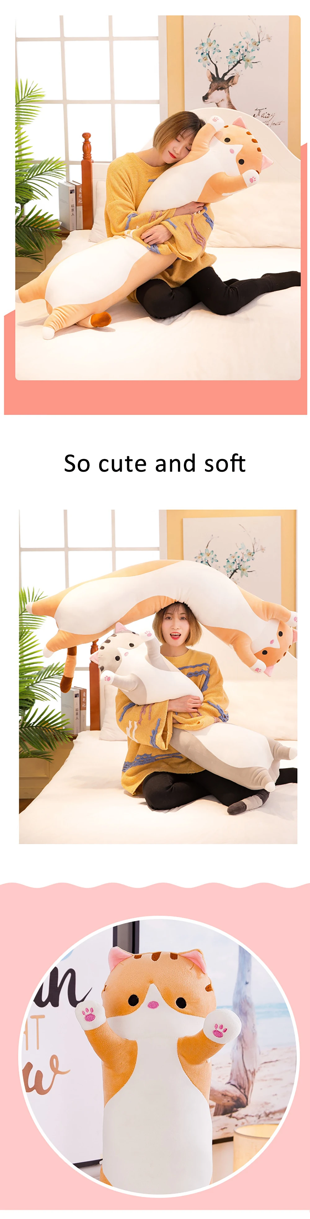 Длинная плюшевая подушка в виде кошки Kawaii, мягкая подушка в виде колбасы, плюшевая хлопковая Подушка, украшение для кровати, детские игрушки, Рождественский подарок на день рождения для девочки