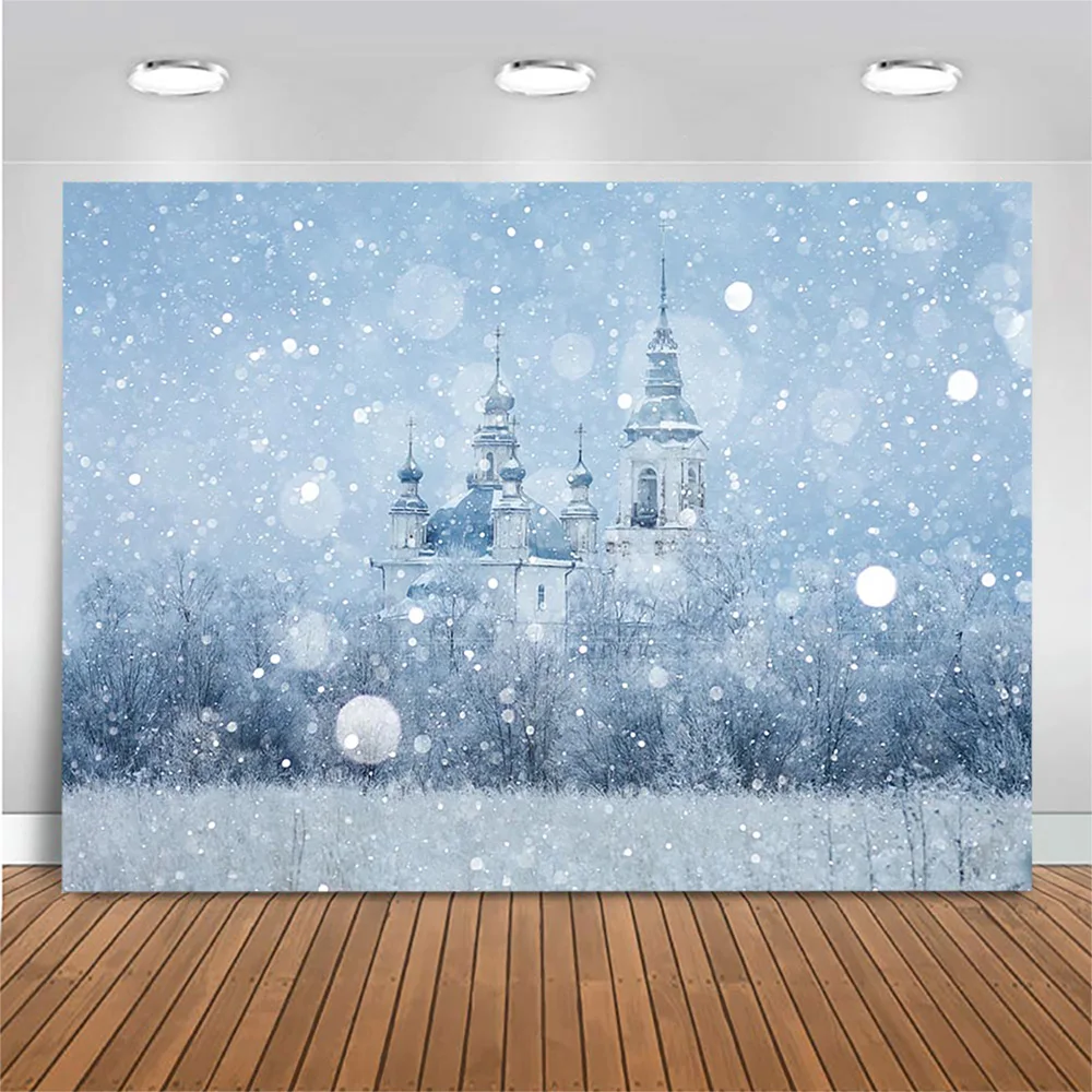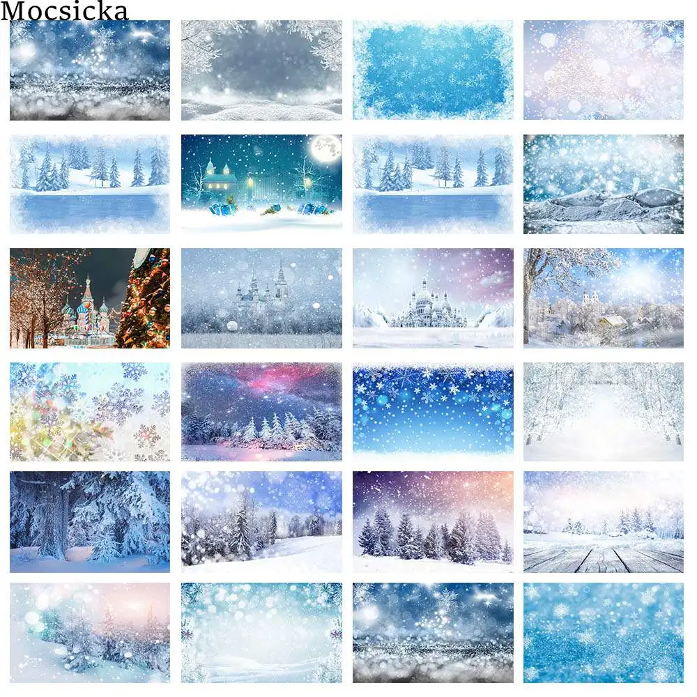 Mocsicka зимний фон Снежная сцена Снежинка снежное поле лес замок фото фон ребенок новорожденный портрет фотографии реквизит