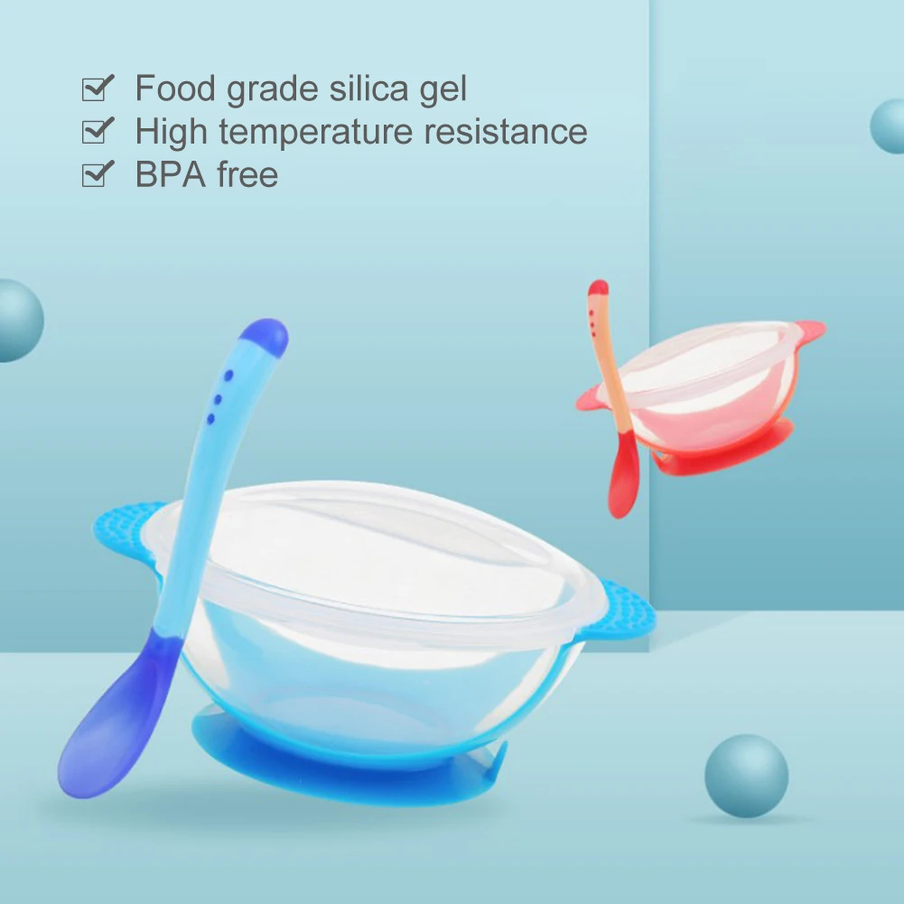 Чаша детская с присоской, набор посуды с ложкой и датчиком температ...