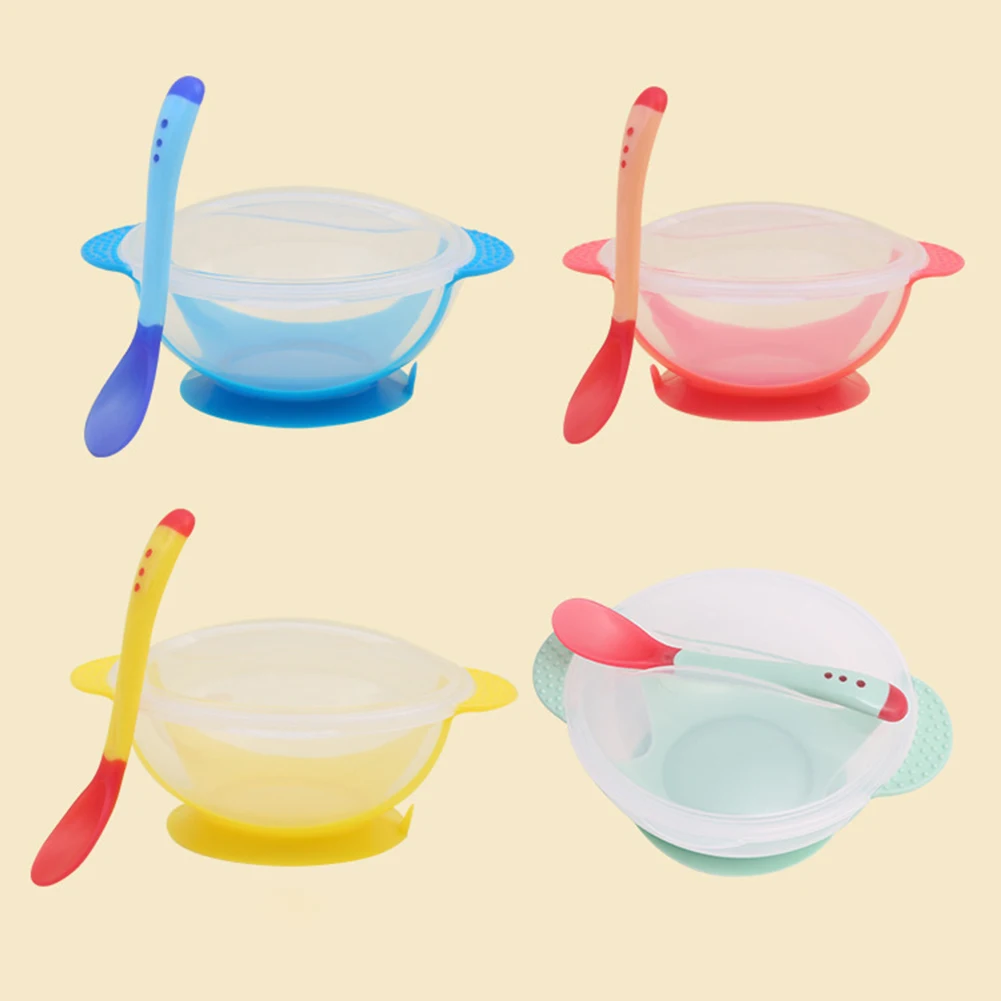 Чаша с температурным датчиком для детей, чаша с присоской, тренировочная чаша, ложка, набор посуды с крышкой чаши