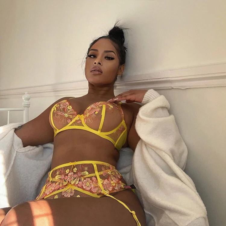 Цветочный эротический комплект нижнего белья с кружевной вышивкой