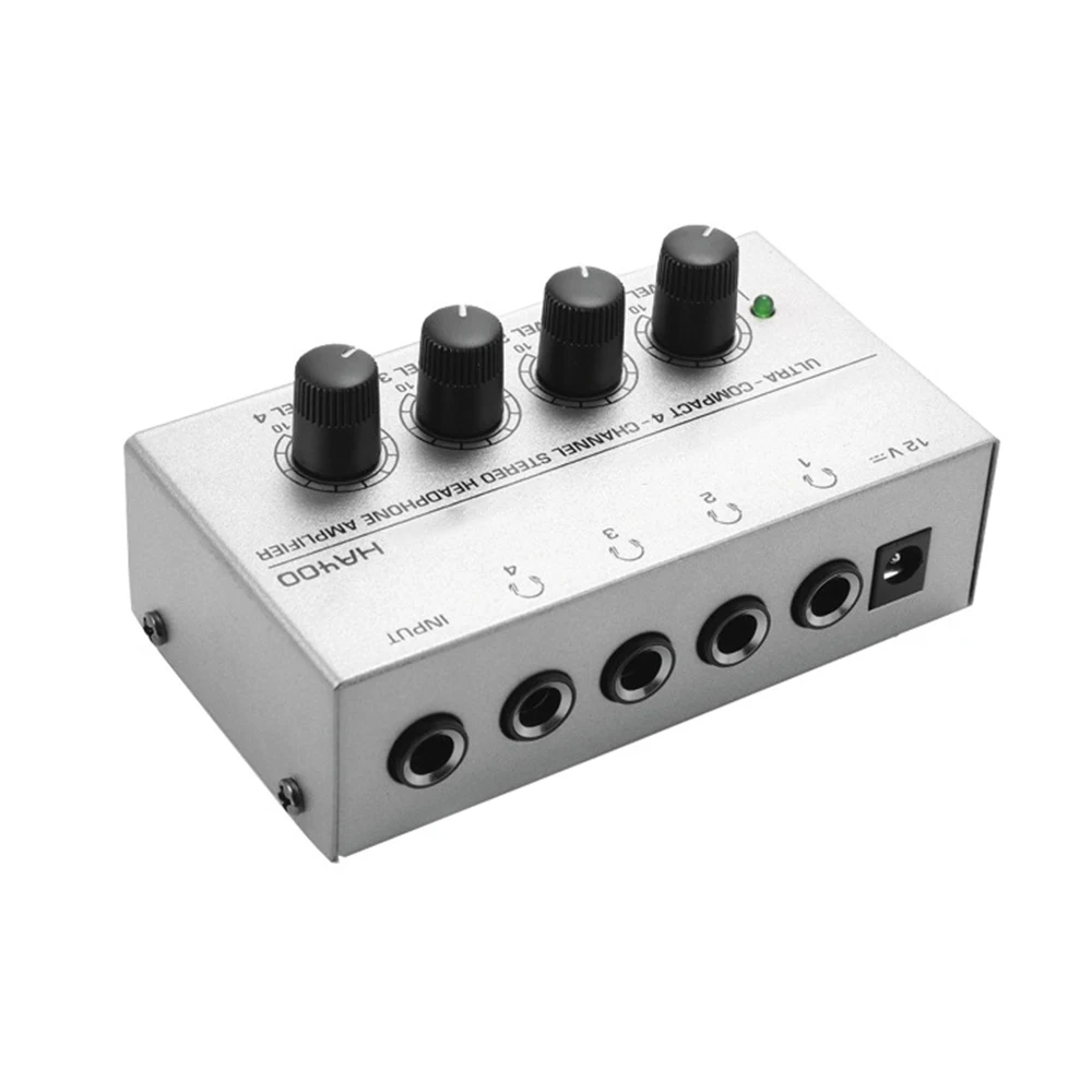 Сверхкомпактный 4-канальный усилитель для наушников, усилитель звука, стерео усилитель с Европейским адаптером для записи музыкального микшера, HA400