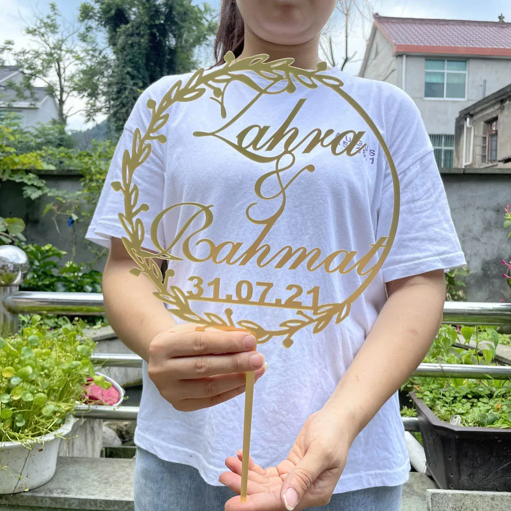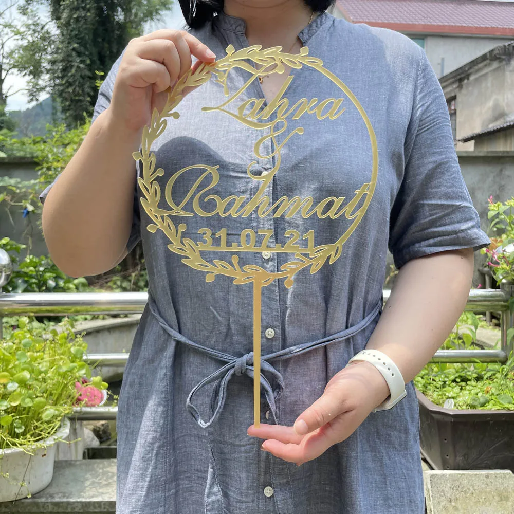 Пользовательские имена жениха и невесты большого размера акриловая зеркальная Золотая Топпер для торта персонализированные деревянные топперы для торта для свадебной вечеринки