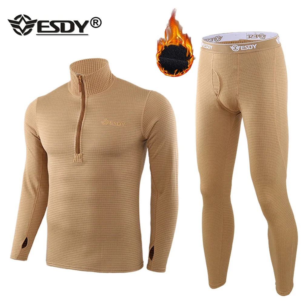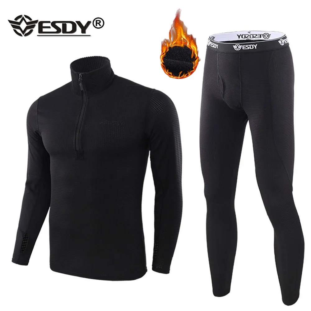 ESDYзимние комплекты термобелья флис пот фитнес теплые кальсоны быс...