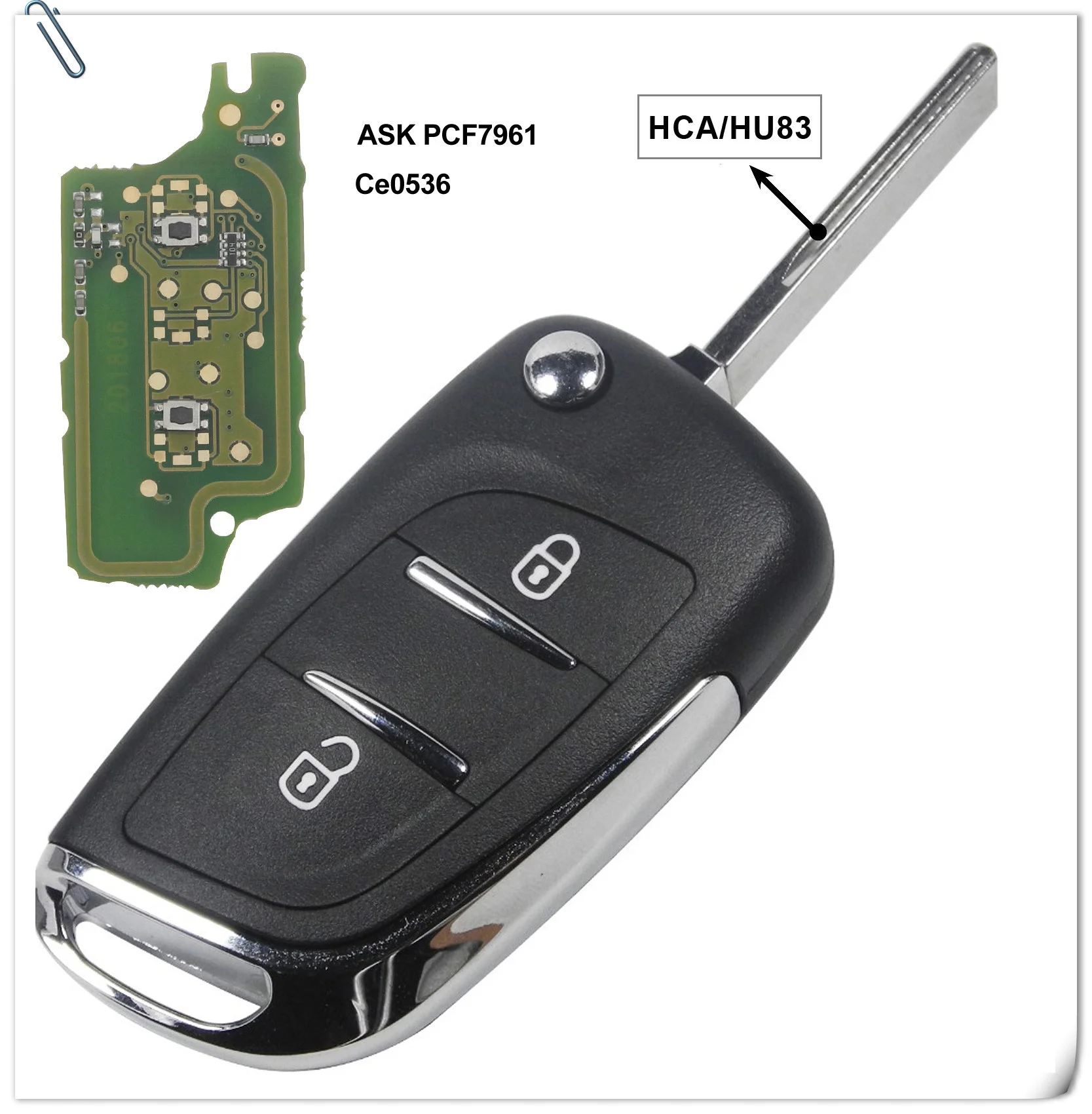 Jingyuqin CE0536 23 кнопочный модифицированный откидной автомобильный ключ для Peugeot Partner 307 308 407 408 3008 ASKFSK 433 МГц PCF7961 HU83VA2