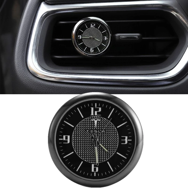 Светящиеся автомобильные украшения, кварцевые часы с орнаментом для Tesla Badge Roadster Cybertuck Model 3 S X Y, аксессуары для приборной панели автомобиля